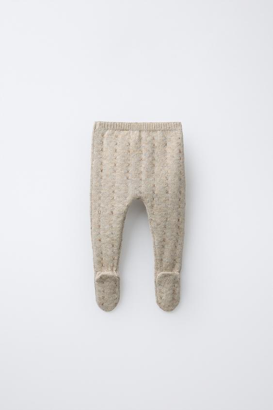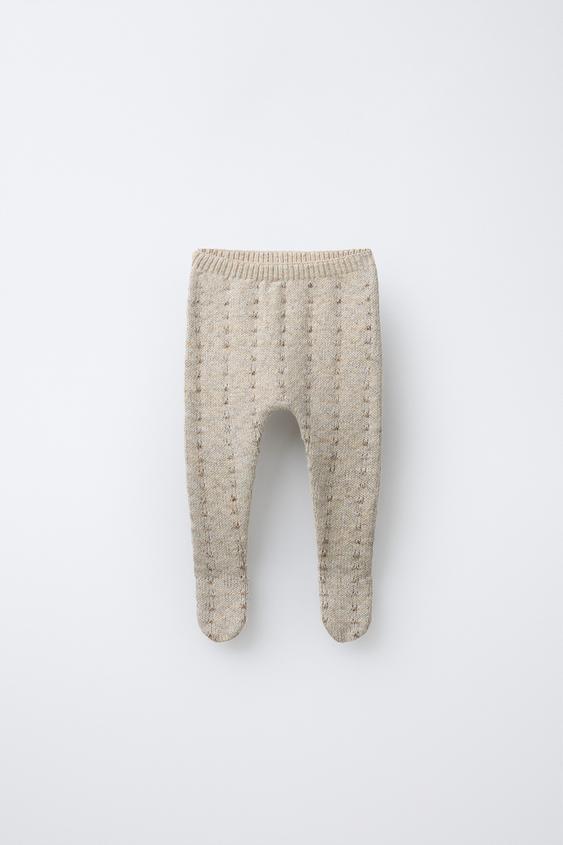ZARA ТРИКОТАЖНЫЕ ЛЕГИНСЫ, СВЕТЛО-БЕЖЕВЫЙ