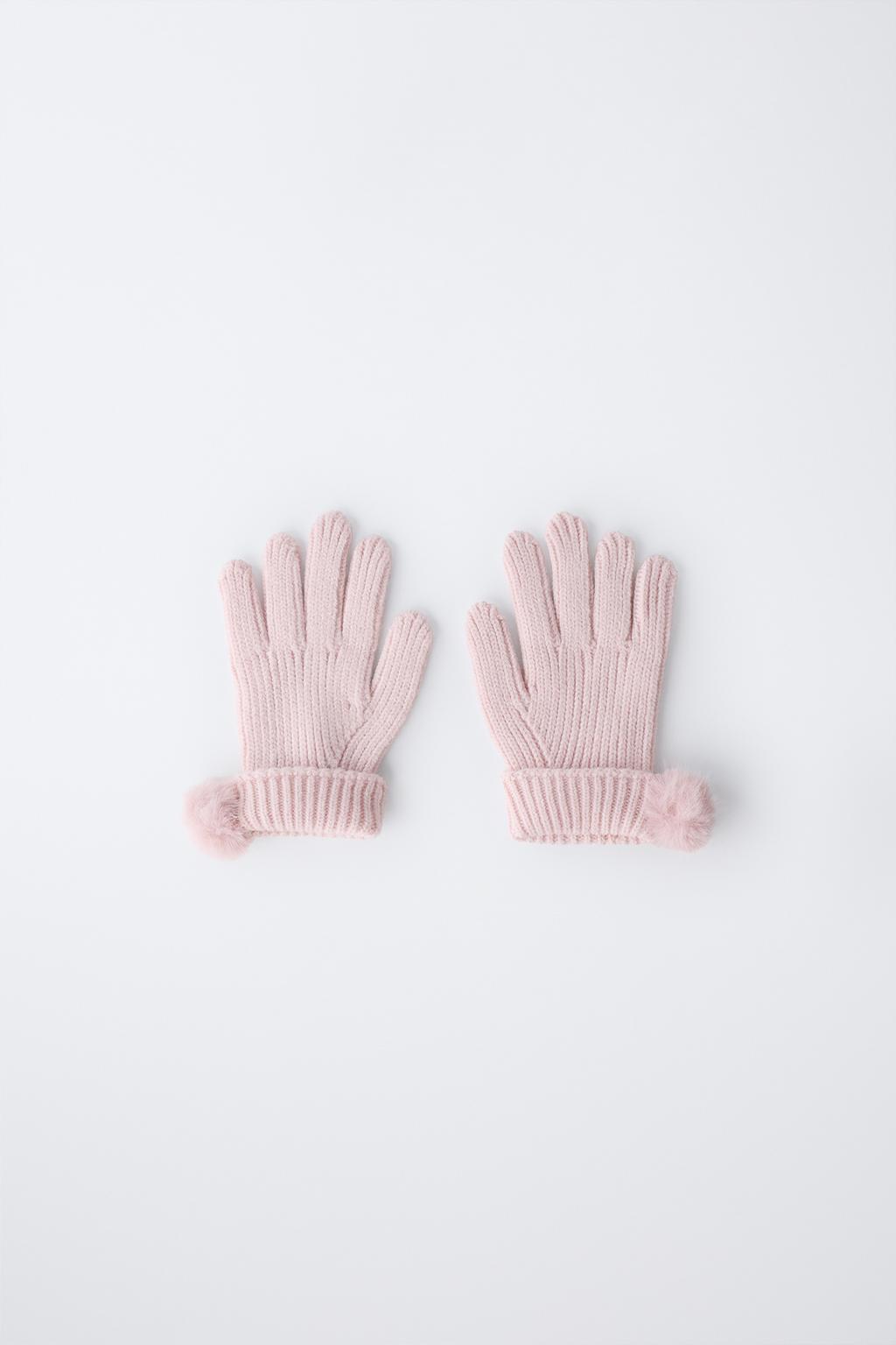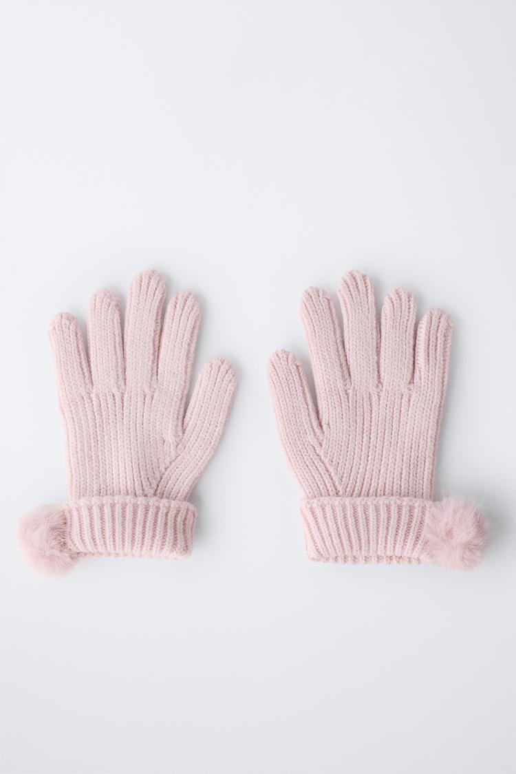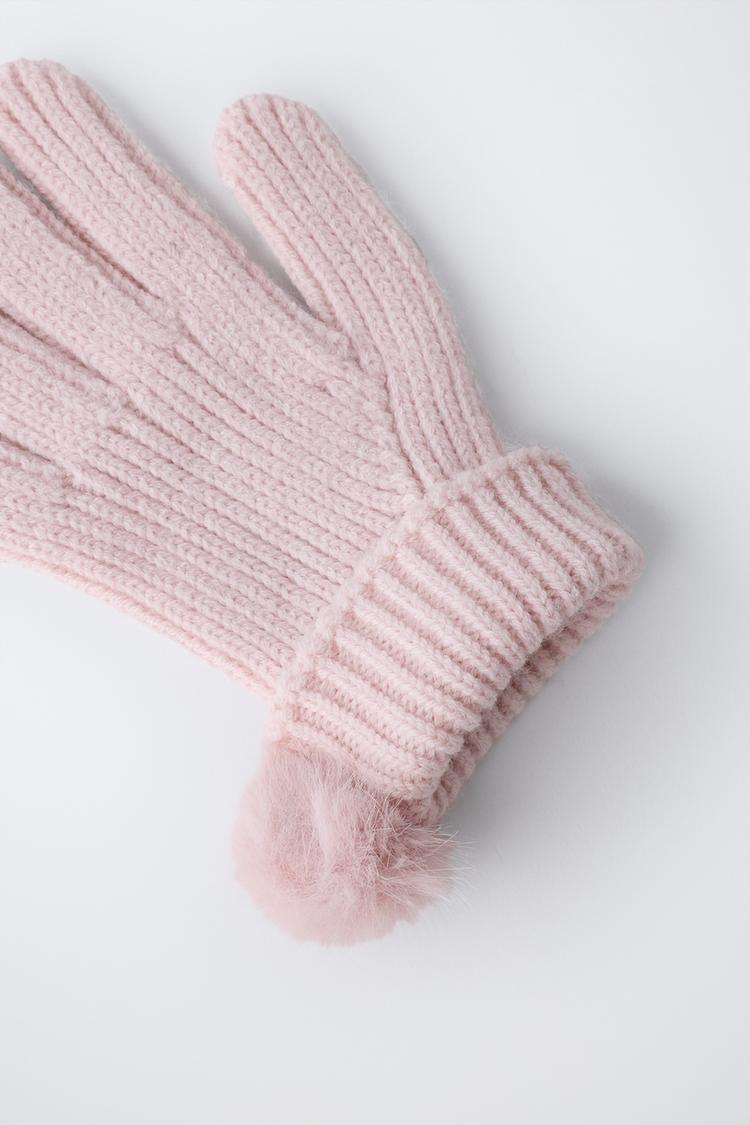 ZARA ТРИКОТАЖНЫЕ ПЕРЧАТКИ С ПОМПОНОМ, РОЗОВЫЙ