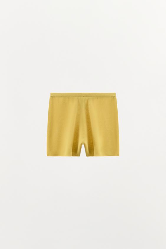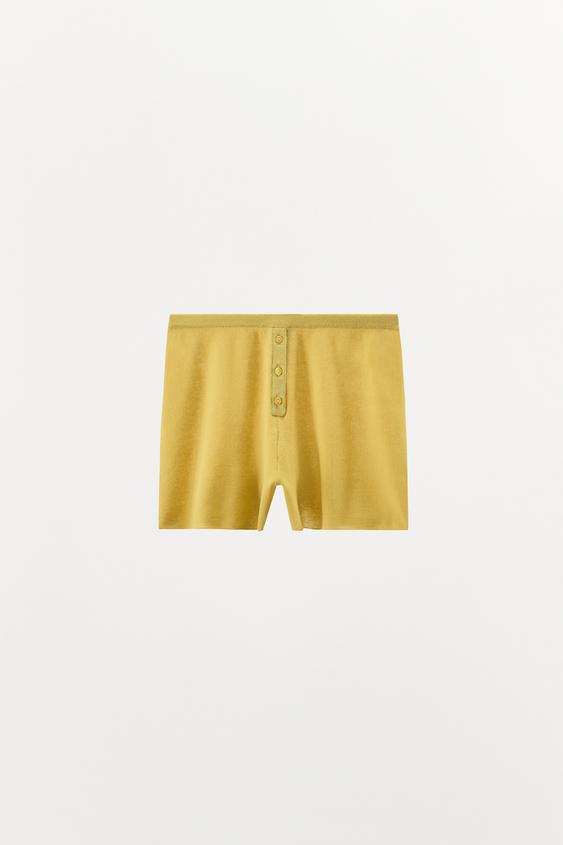ZARA ТРИКОТАЖНЫЕ ШОРТЫ С ПУГОВИЦАМИ, ЯИЧНО-ЖЕЛТЫЙ