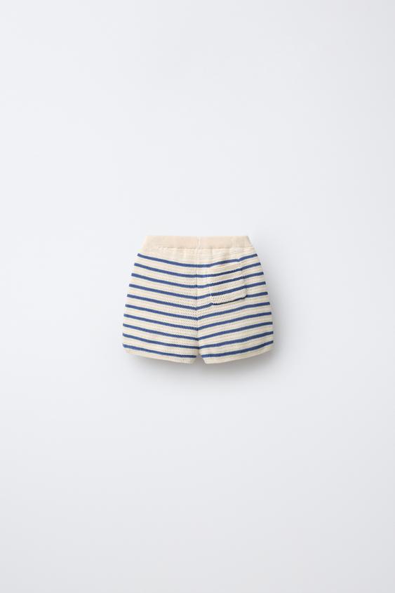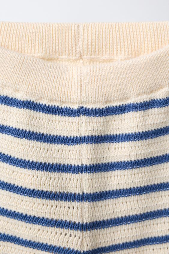 ZARA ТРИКОТАЖНЫЕ ШОРТЫ В ПОЛОСКУ, ЭКРЮ/СИНИЙ