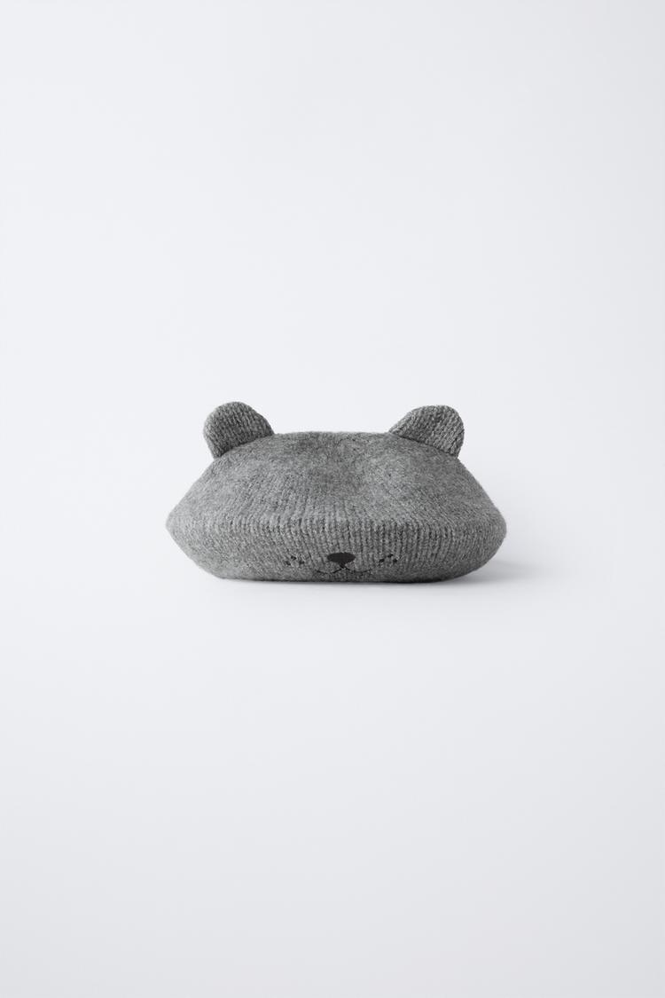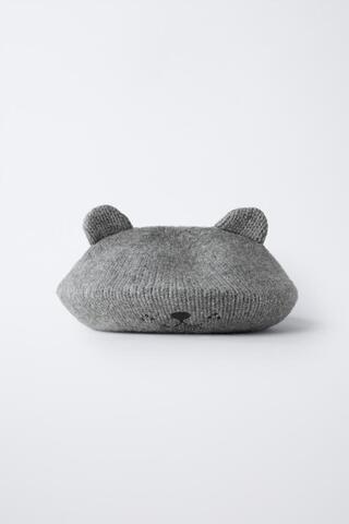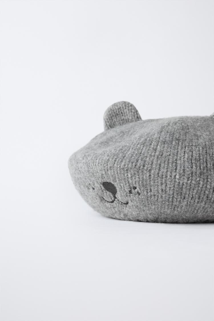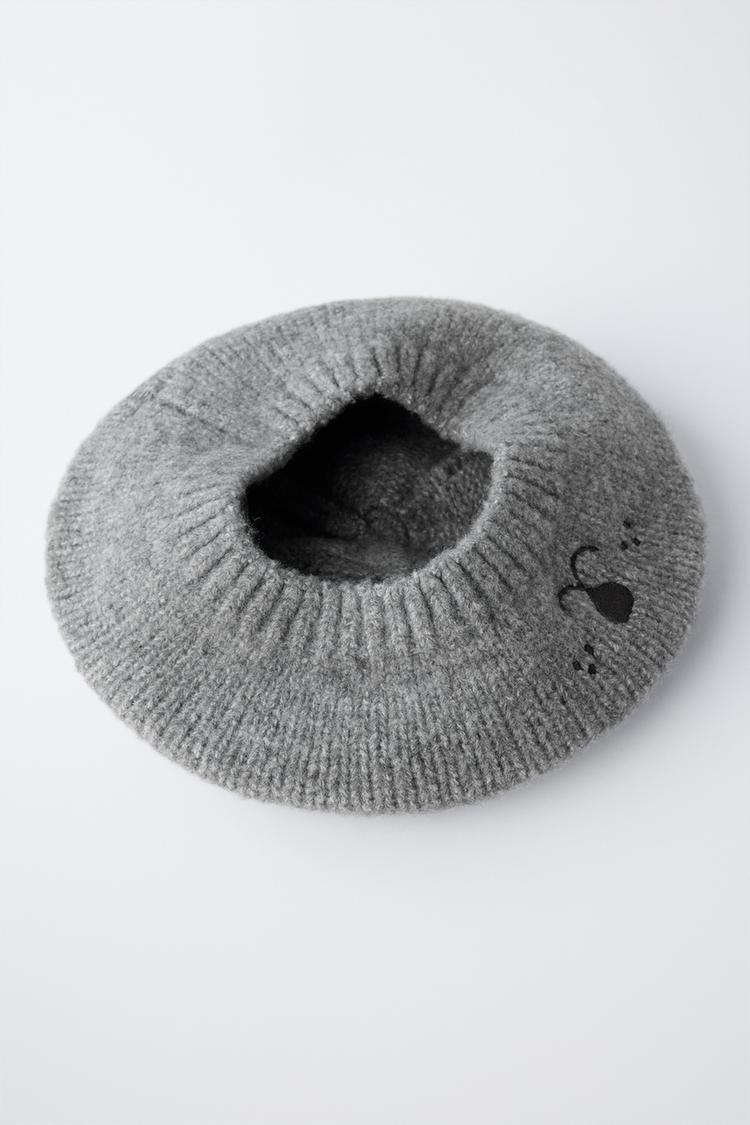 ZARA ТРИКОТАЖНЫЙ БЕРЕТ С ВЫШИВКОЙ И УШАМИ, СЕРЫЙ МЕЛАНЖ