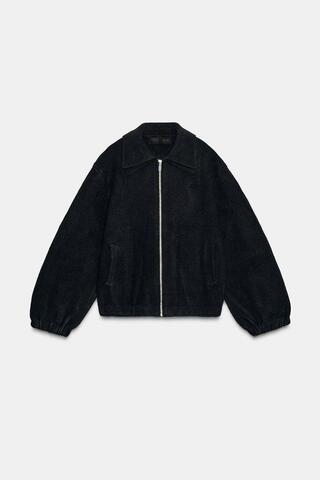 ZARA ТРИКОТАЖНЫЙ БОМБЕР НА МОЛНИИ, ЧЕРНЫЙ