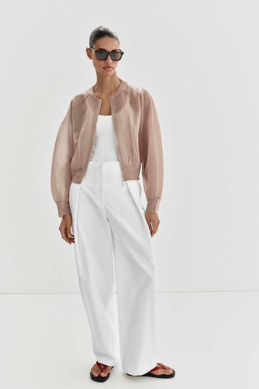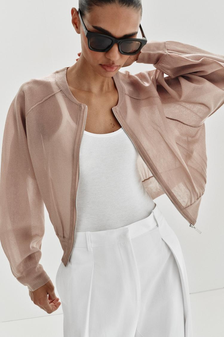 ZARA ТРИКОТАЖНЫЙ БОМБЕР, ПУДРОВЫЙ