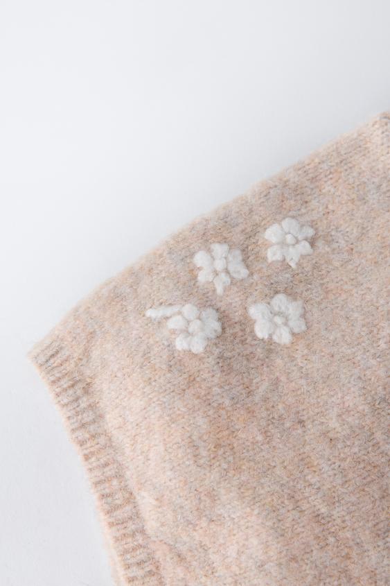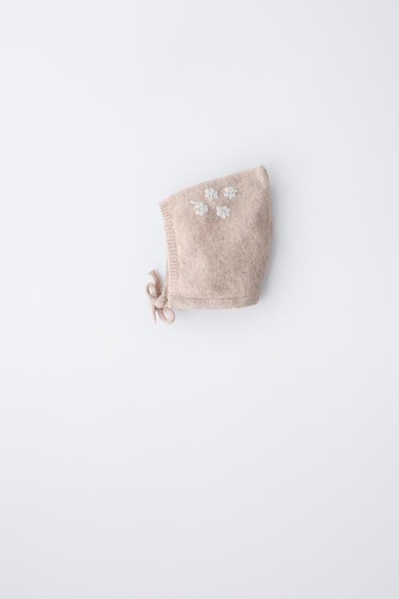 ZARA ТРИКОТАЖНЫЙ ЧЕПЧИК С ЦВЕТОЧНОЙ ВЫШИВКОЙ, СВЕТЛО-БЕЖЕВЫЙ