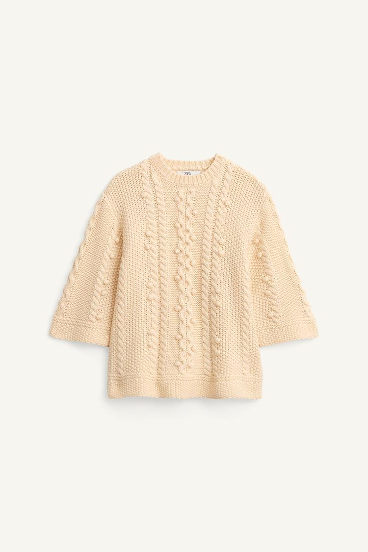 ZARA ТРИКОТАЖНЫЙ ДЖЕМПЕР С КОРОТКИМИ РУКАВАМИ, ЭКРЮ