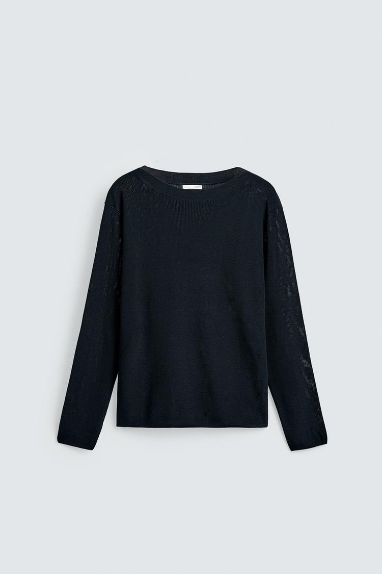 ZARA ТРИКОТАЖНЫЙ ДЖЕМПЕР С МЕРСЕРИЗАЦИЕЙ, МОРСКОЙ СИНИЙ