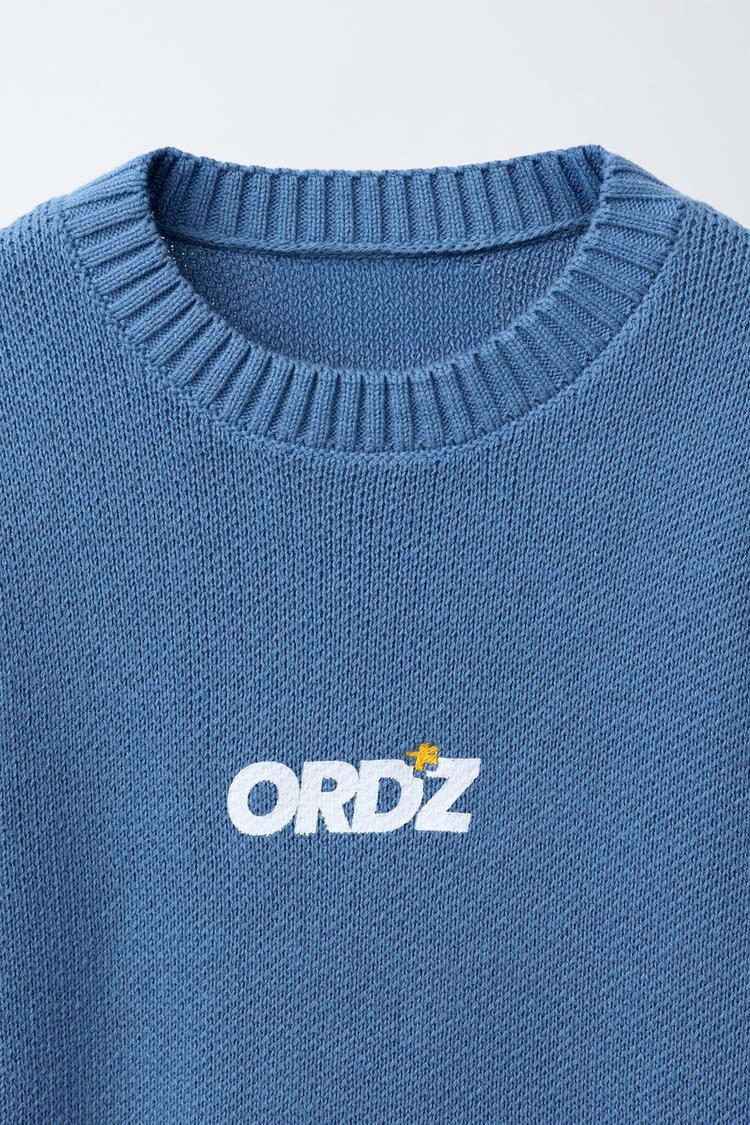 ZARA ТРИКОТАЖНЫЙ ДЖЕМПЕР С НАДПИСЬЮ, СИНИЙ