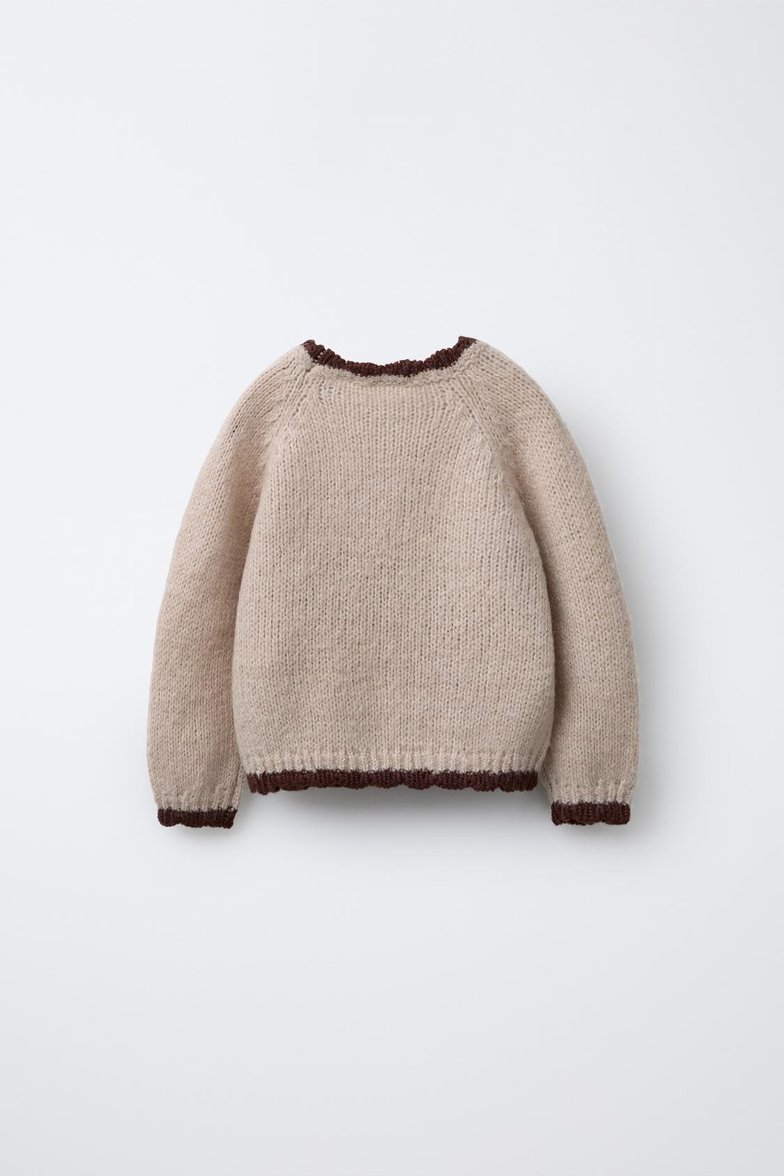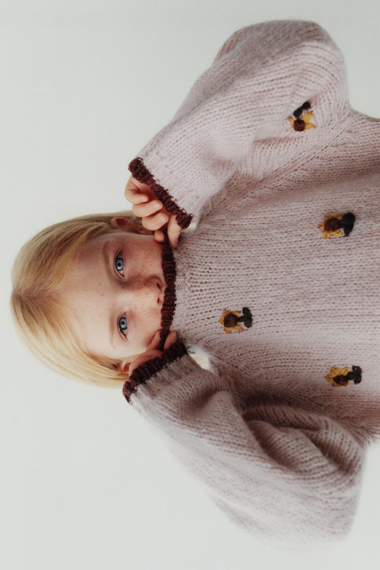 ZARA ТРИКОТАЖНЫЙ ДЖЕМПЕР С ВЫШИВКОЙ «ПОДСОЛНУХИ», СВЕТЛО-БЕЖЕВЫЙ