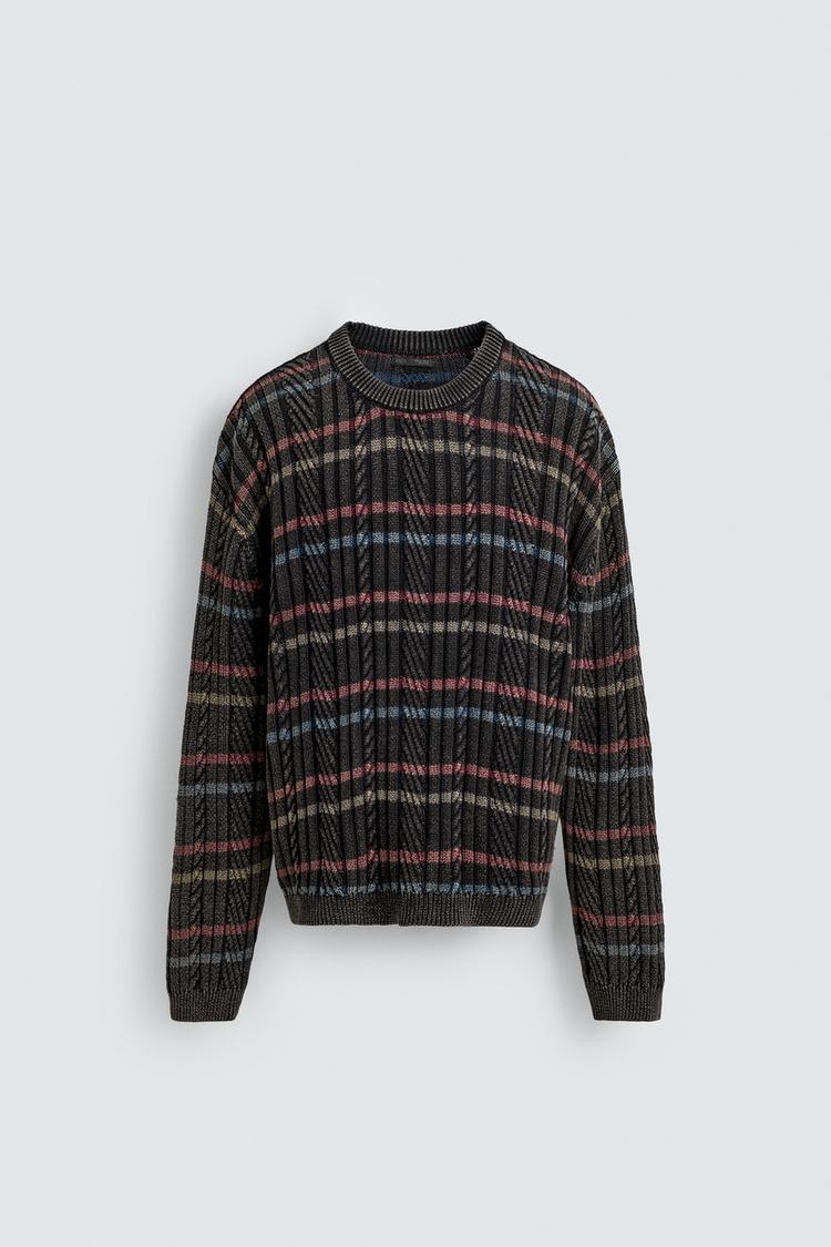 ZARA ТРИКОТАЖНЫЙ ДЖЕМПЕР В ПОЛОСКУ, ЧЕРНЫЙ