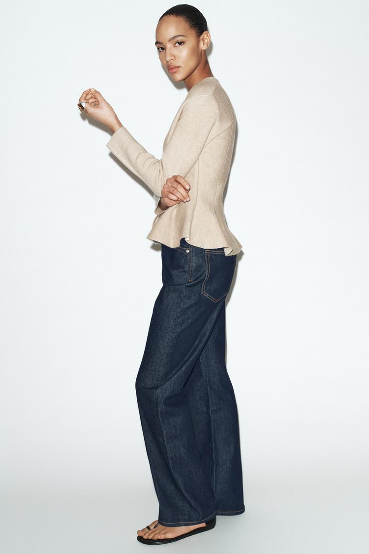 ZARA ТРИКОТАЖНЫЙ КАРДИГАН С БАСКОЙ, БЕЖЕВЫЙ