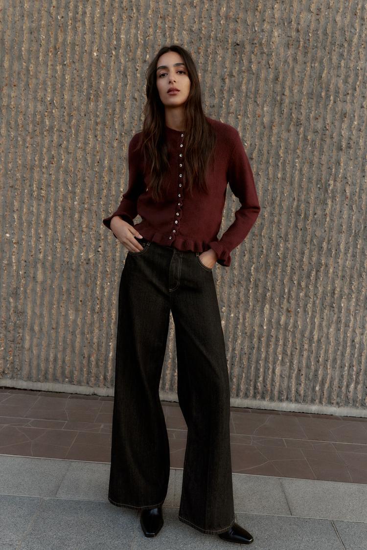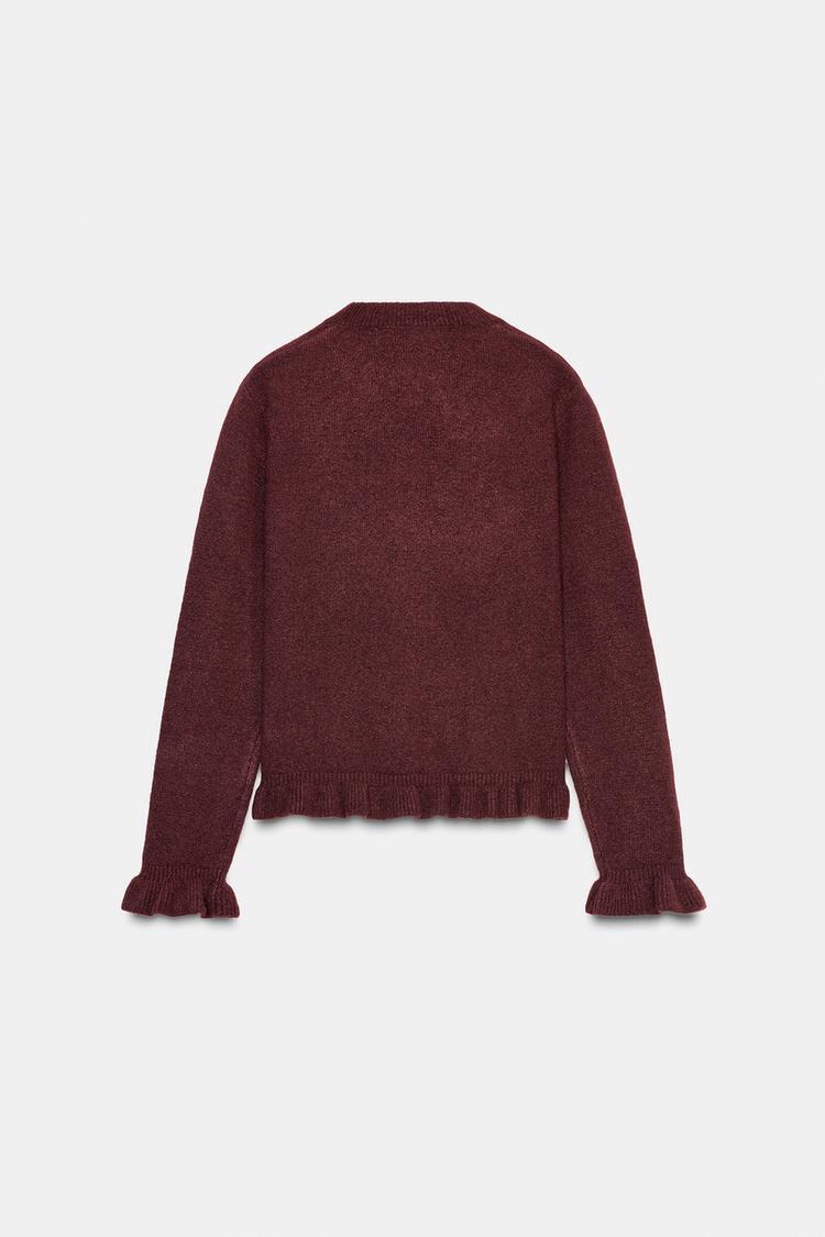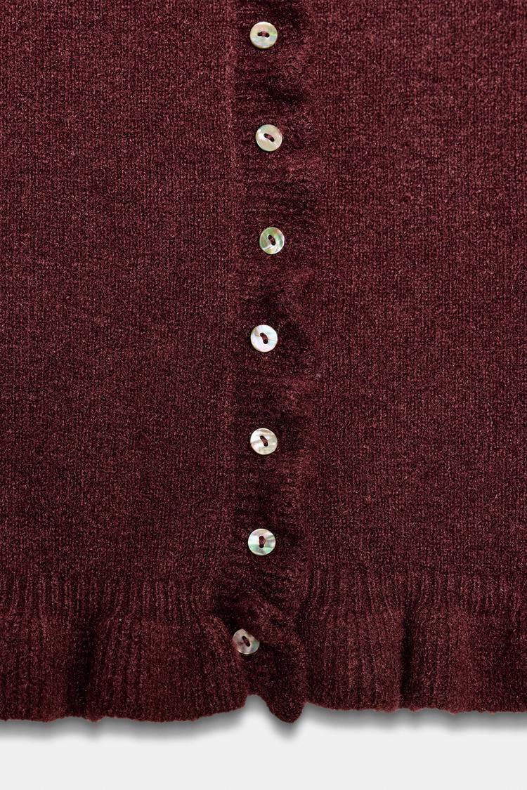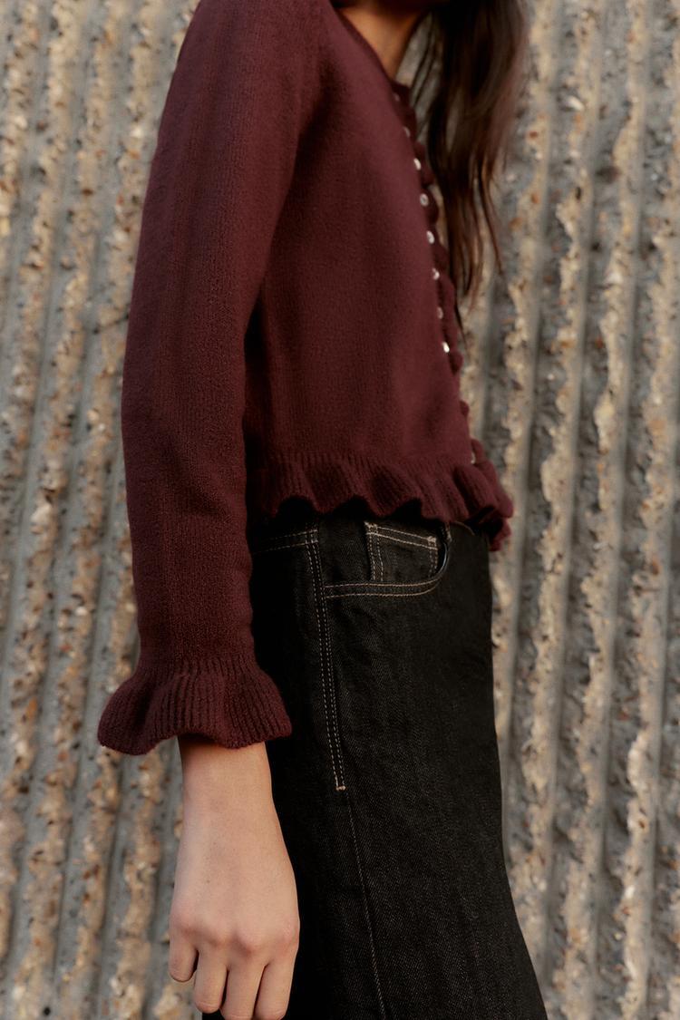 ZARА ТРИКОТАЖНЫЙ КАРДИГАН С ВОЛАНАМИ, БУРГУНДИ