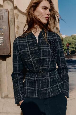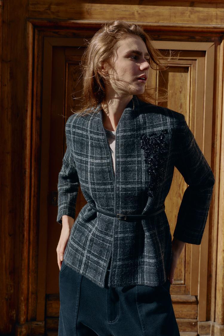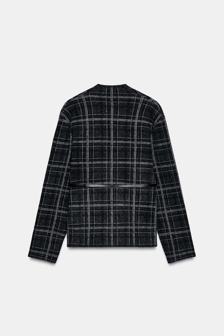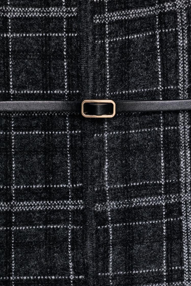 ZARA ТРИКОТАЖНЫЙ КАРДИГАН В КЛЕТКУ С ПОЯСОМ, СЕРЫЙ