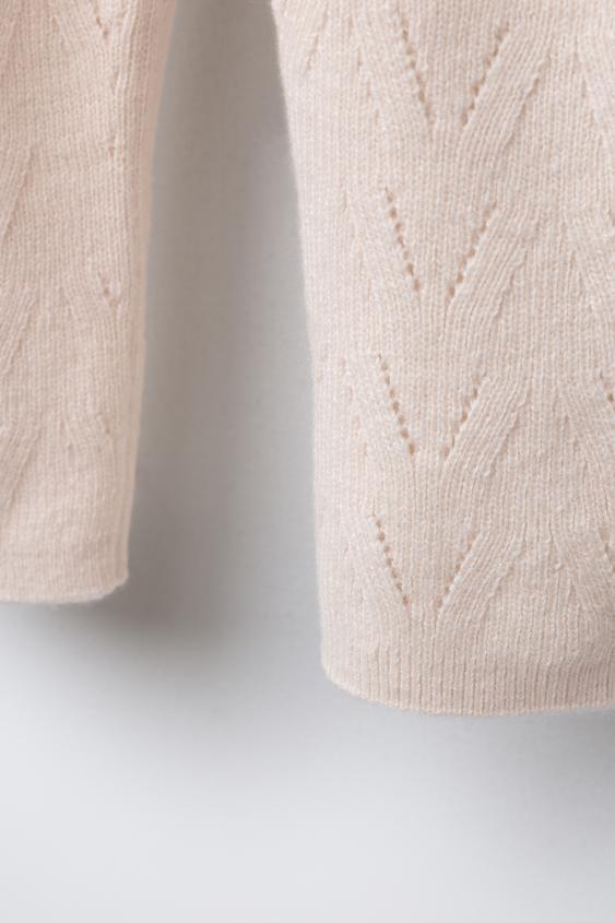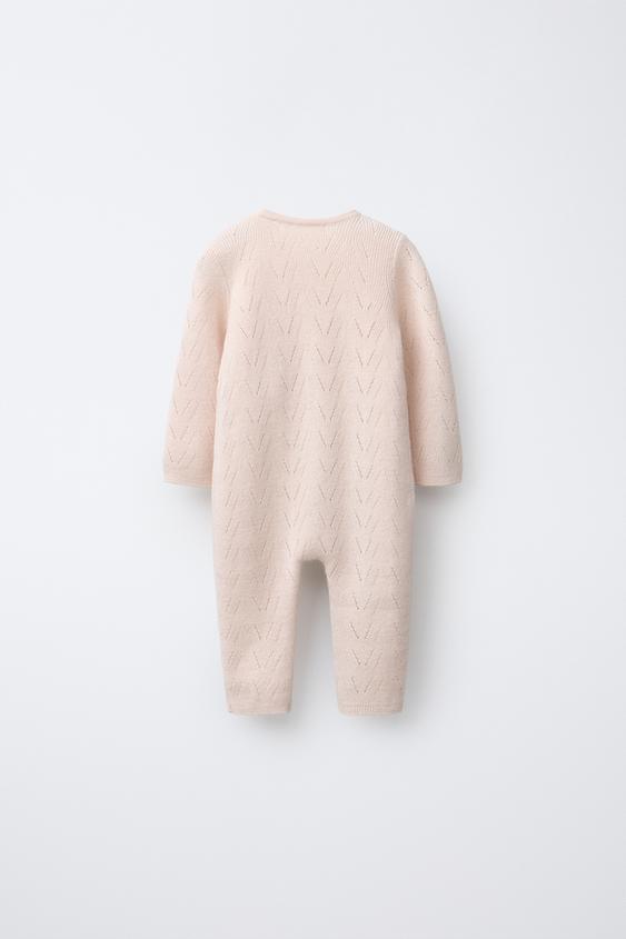 ZARA ТРИКОТАЖНЫЙ КОМБИНЕЗОН ИЗ ХЛОПКА И ШЕРСТИ, СВЕТЛО-БЕЖЕВЫЙ