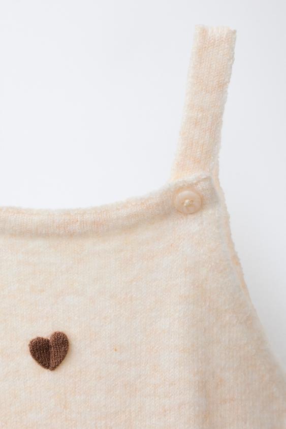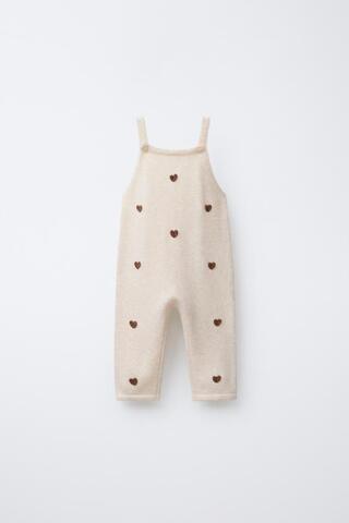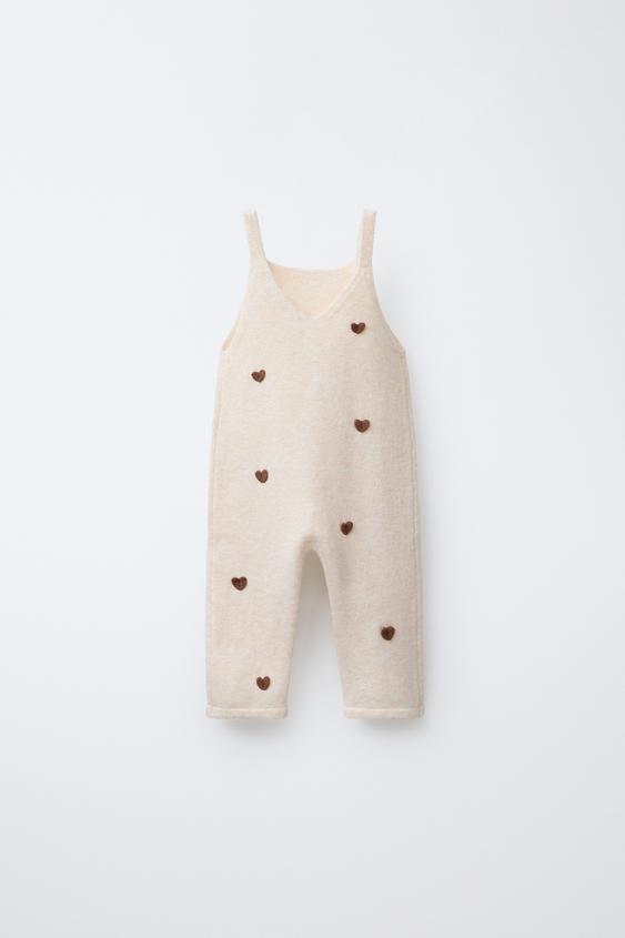 ZARA ТРИКОТАЖНЫЙ КОМБИНЕЗОН С СЕРДЕЧКАМИ, СЛОНОВАЯ КОСТЬ