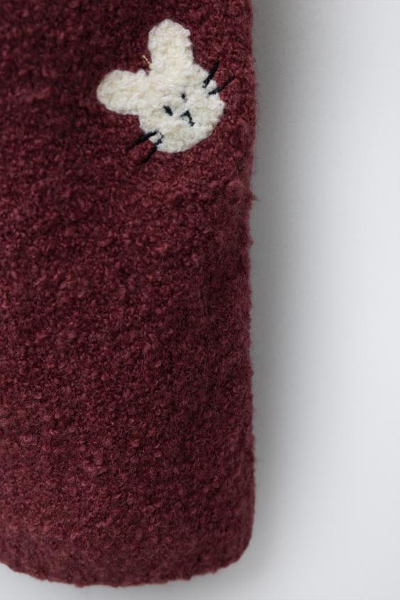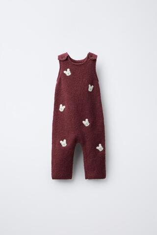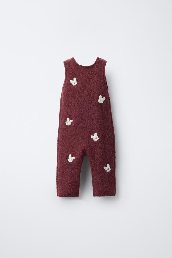 ZARA ТРИКОТАЖНЫЙ КОМБИНЕЗОН С ВЫШИТЫМИ КРОЛИКАМИ, МАЛИНОВЫЙ