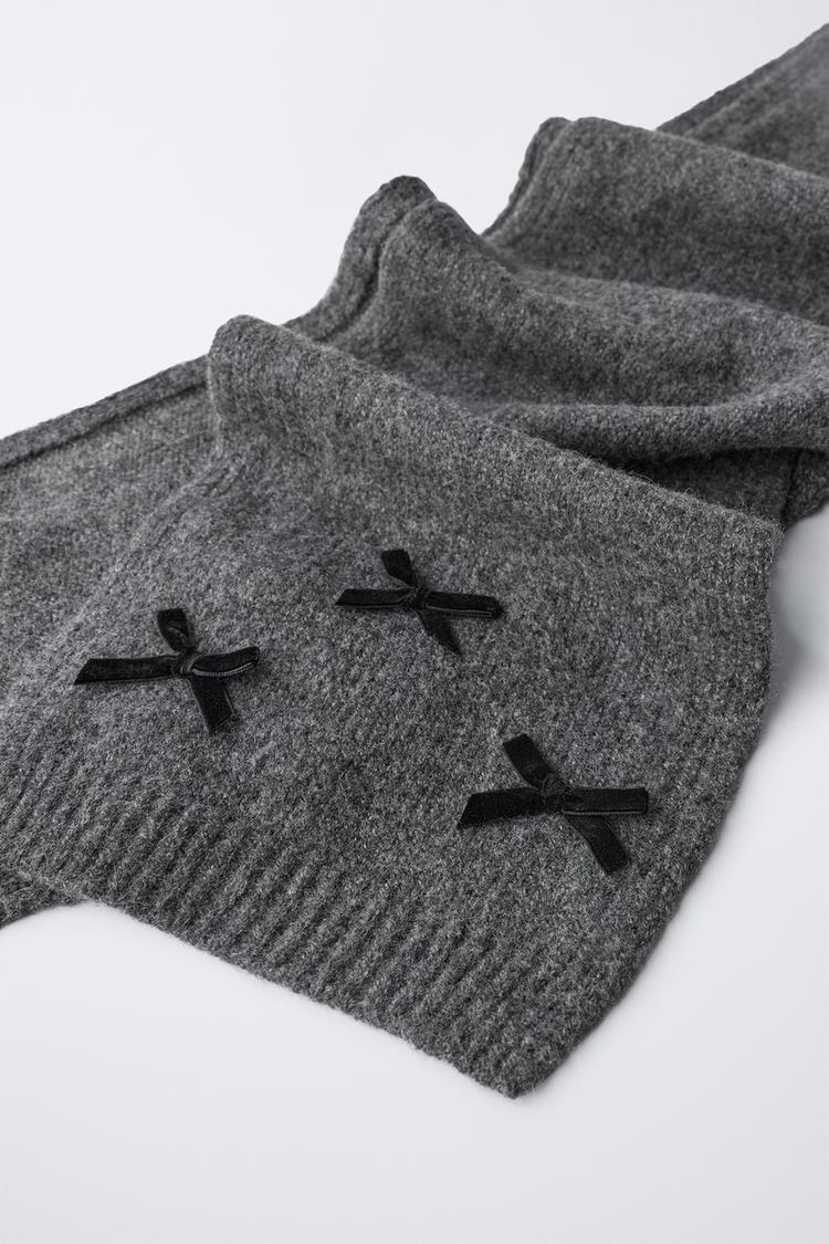 ZARA ТРИКОТАЖНЫЙ ШАРФ С БАРХАТНЫМИ БАНТАМИ, АНТРАЦИТВО-СЕРЫЙ