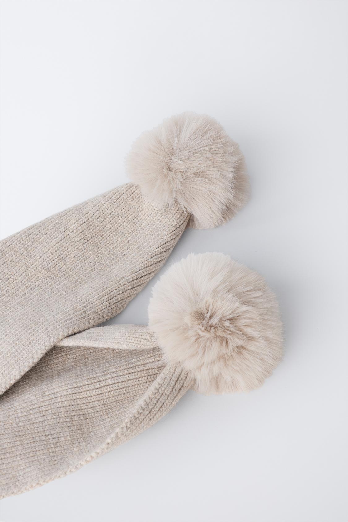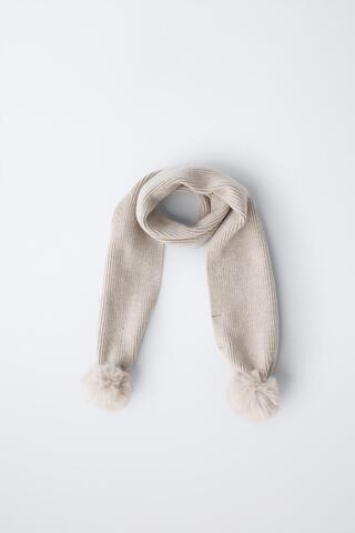 ZARA ТРИКОТАЖНЫЙ ШАРФ С ПОМПОНОМ, ПЕСОЧНЫЙ