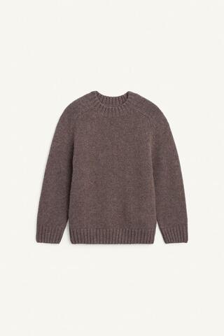 Трикотажный свитер с круглым вырезом, длинными рукавами и рубчатой полоской. 100% ткань из мериносовой шерсти.