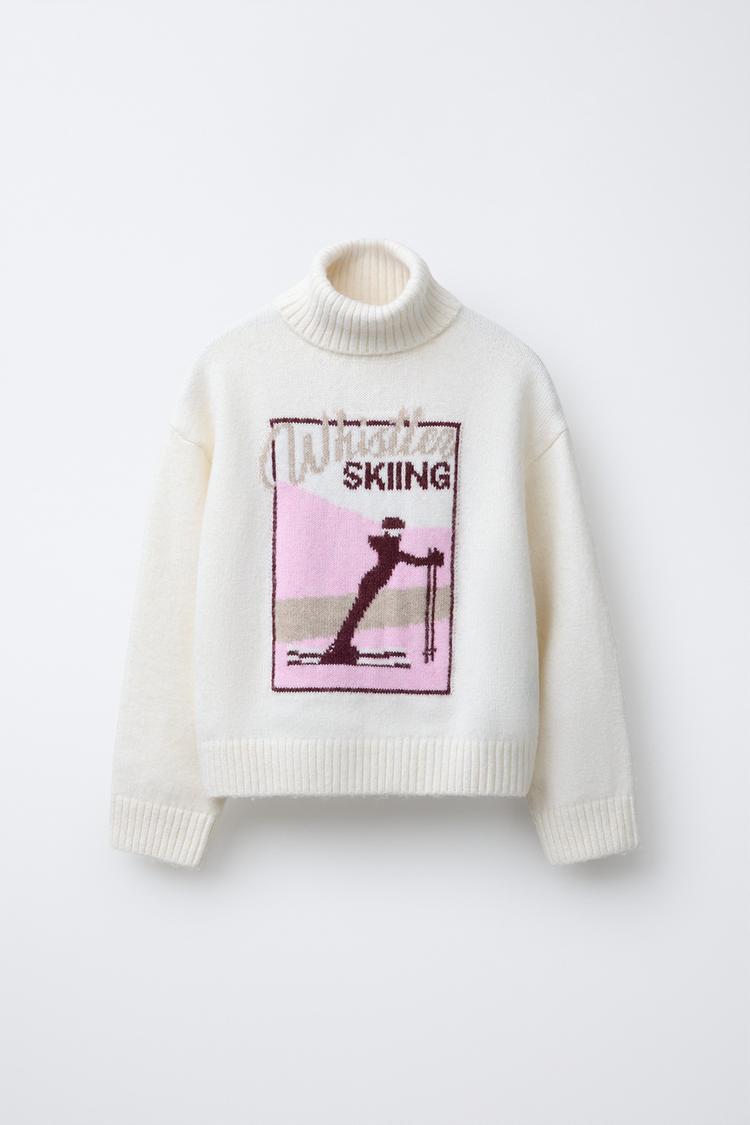 ZARA ТРИКОТАЖНЫЙ СВИТЕР С ВЫСОКИМ ВОРОТНИКОМ И ПРИНТОМ, ЭКРЮ