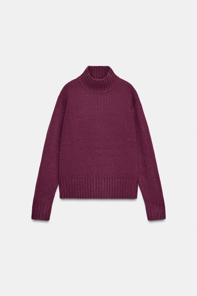 ZARA ТРИКОТАЖНЫЙ СВИТЕР С ВЫСОКИМ ВОРОТНИКОМ, ЛИЛОВЫЙ