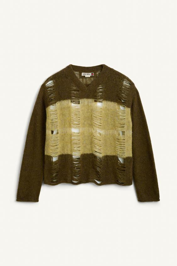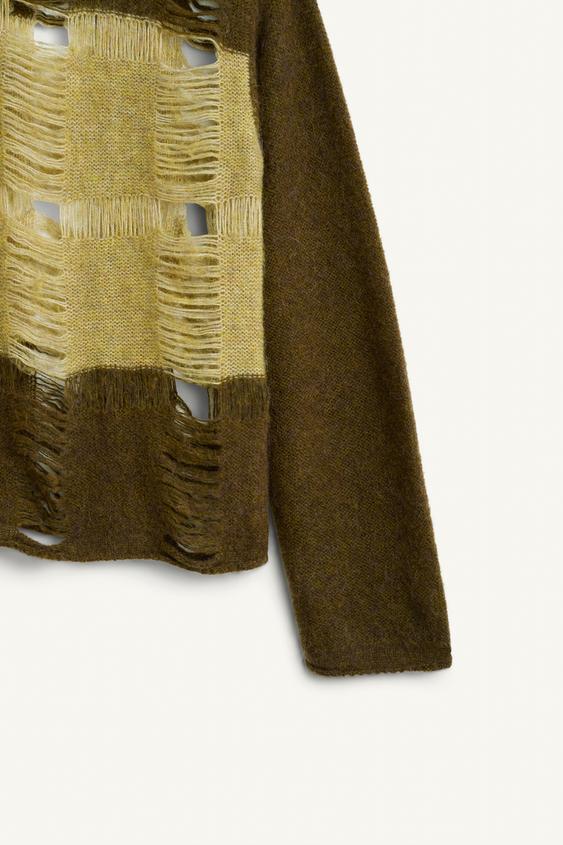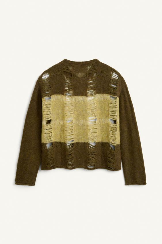 ZARA ТРИКОТАЖНЫЙ СВИТЕР СВОБОДНОГО КРОЯ С ВОЛОКНОМ АЛЬПАКИ, ОТТЕНКИ ЗЕЛЕНОГО