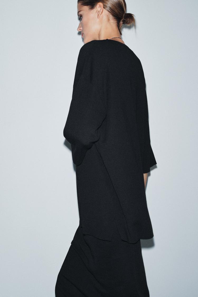 ZARA ТРИКОТАЖНЫЙ ТОП ОВЕРСАЙЗ, ЧЕРНЫЙ