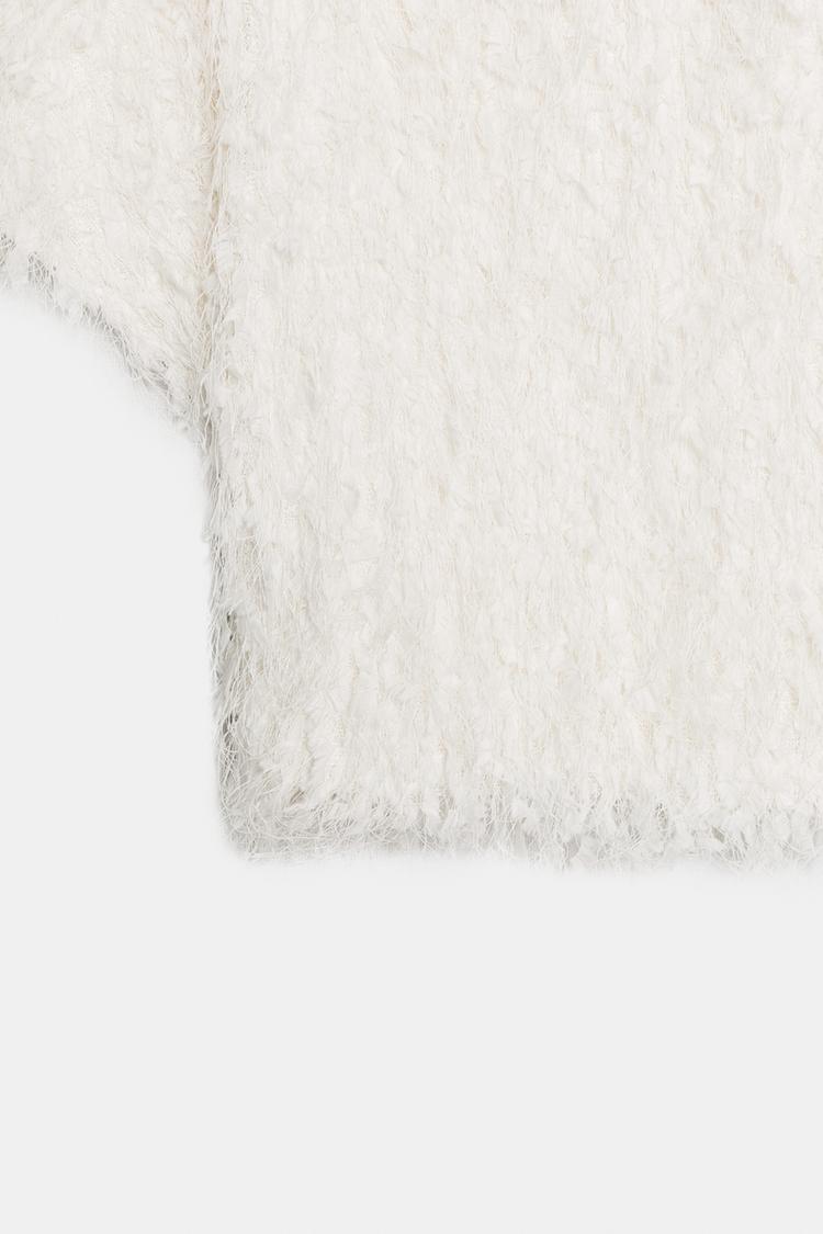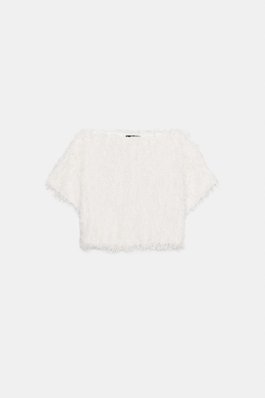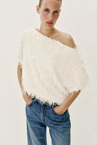 ZARA ТРИКОТАЖНЫЙ ТОП С БАХРОМОЙ, ЭКРЮ