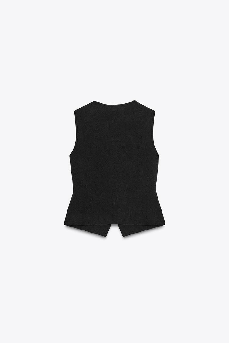 ZARA ТРИКОТАЖНЫЙ ТОП С БАСКОЙ, ЧЕРНЫЙ