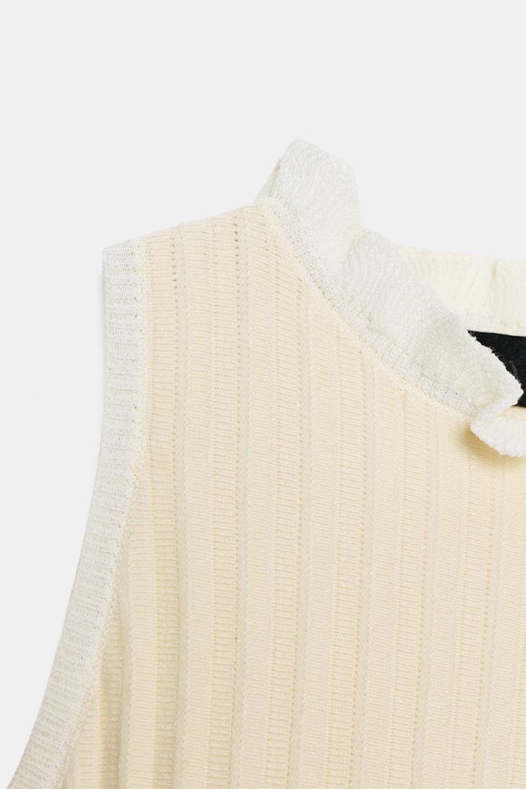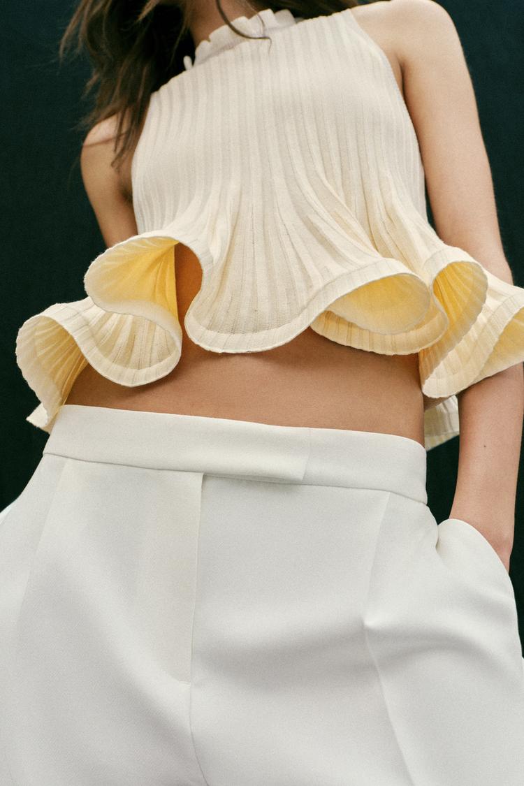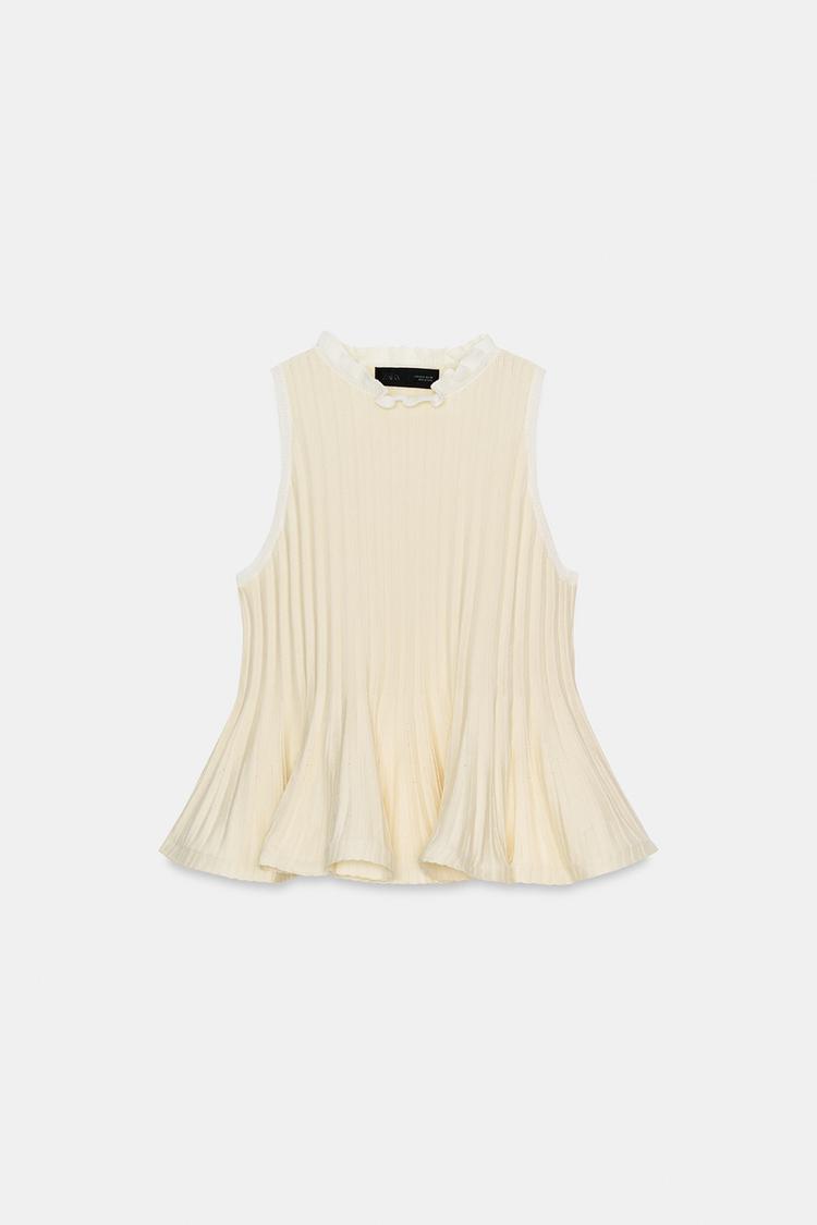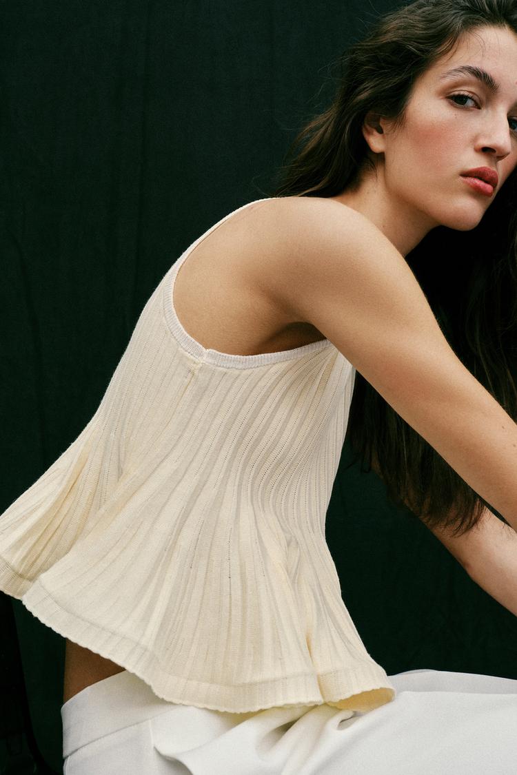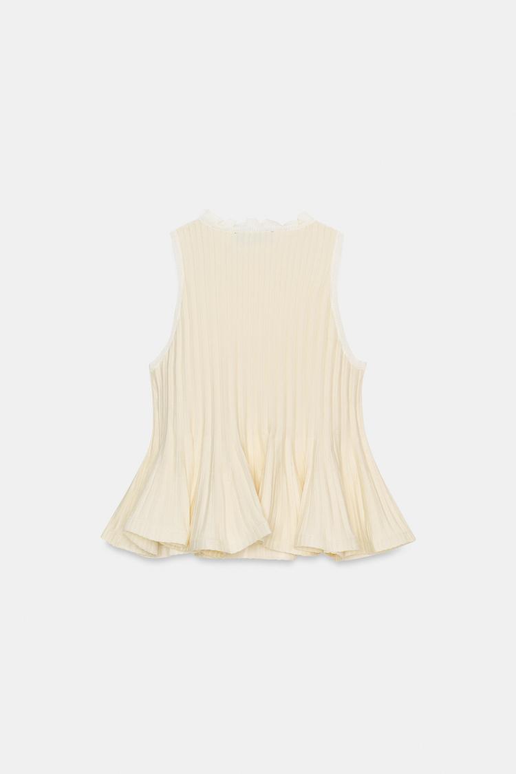 ZARA ТРИКОТАЖНЫЙ ТОП С БАСКОЙ, ЭКРЮ