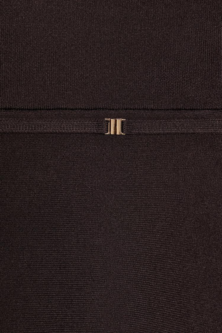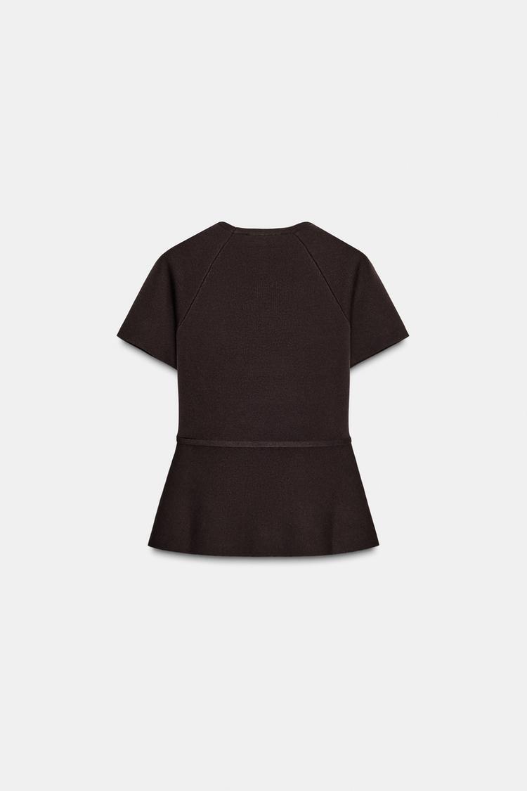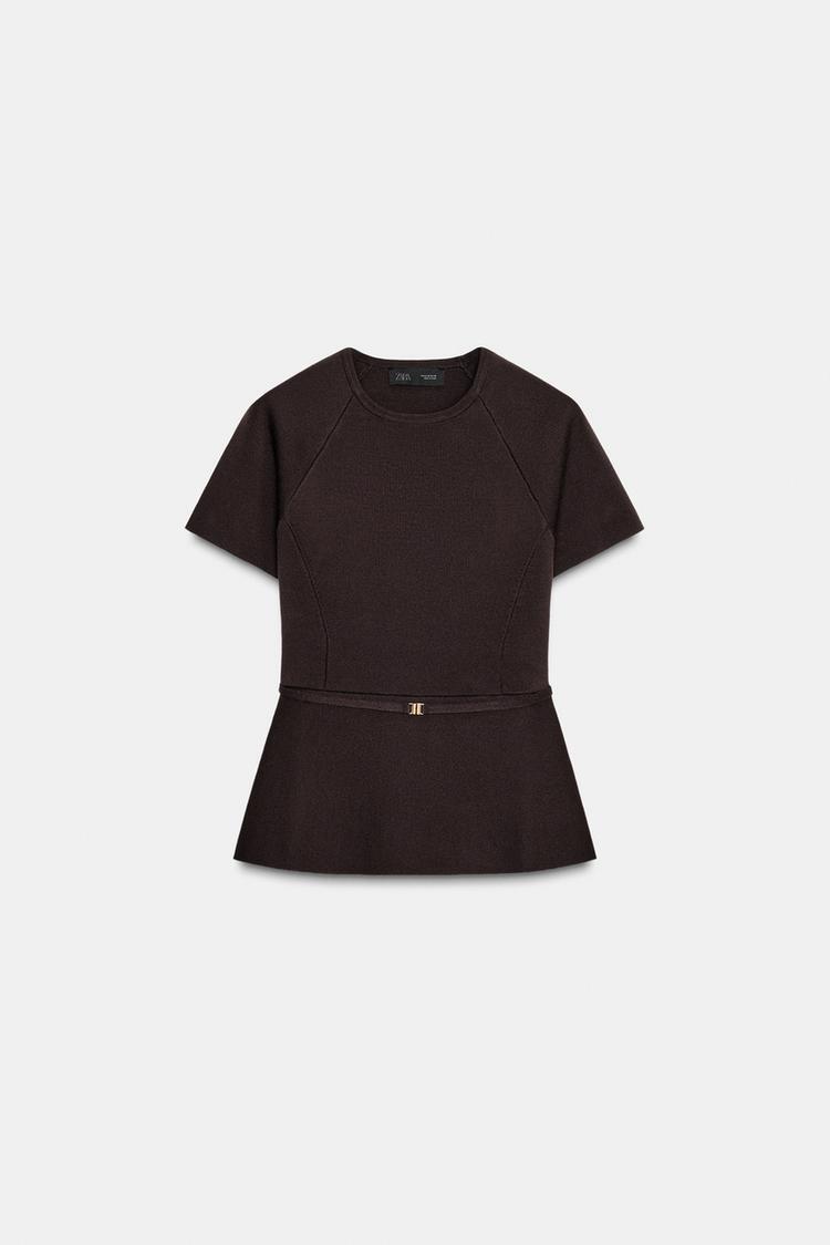 ZARA ТРИКОТАЖНЫЙ ТОП С БАСКОЙ И ПОЯСОМ, ШОКОЛАДНЫЙ