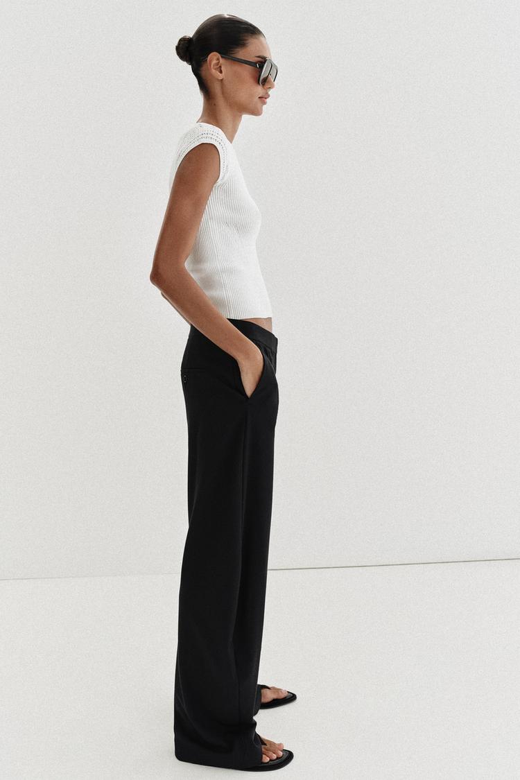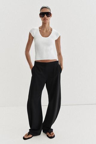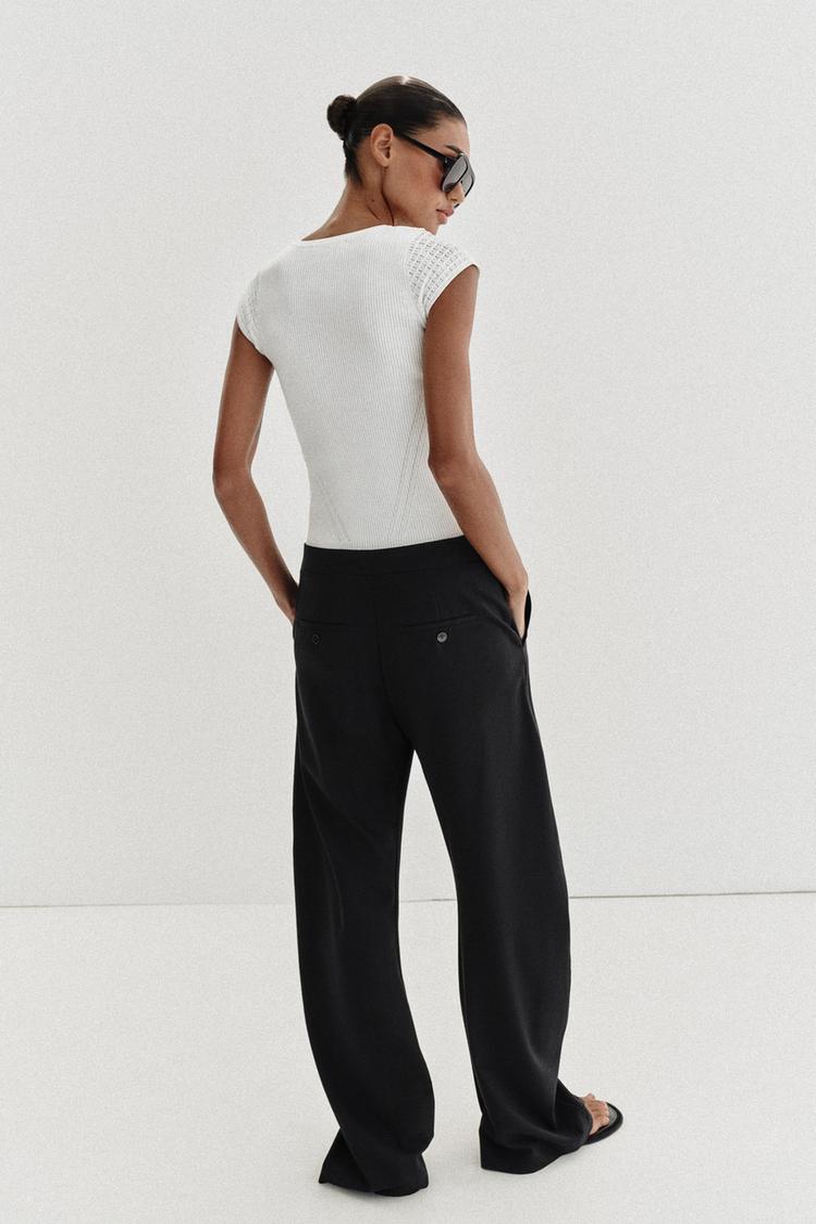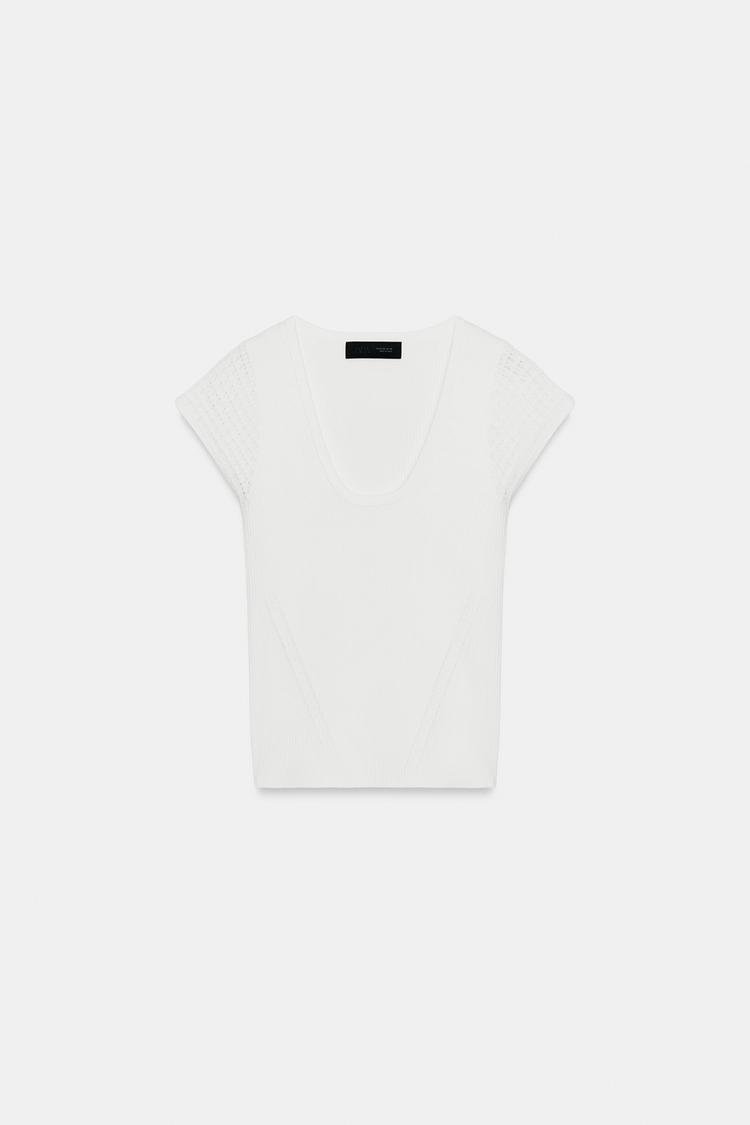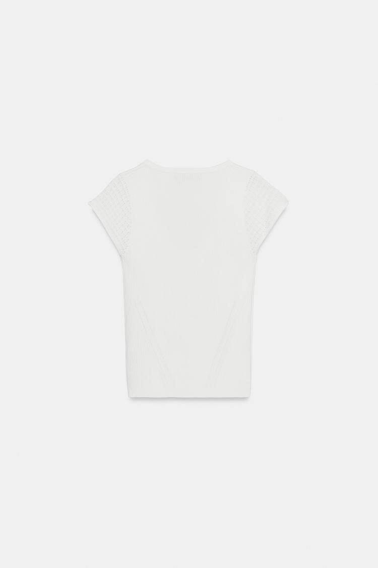 ZARA ТРИКОТАЖНЫЙ ТОП С КОМБИНИРОВАННЫМИ РУКАВАМИ, БЕЛЫЙ