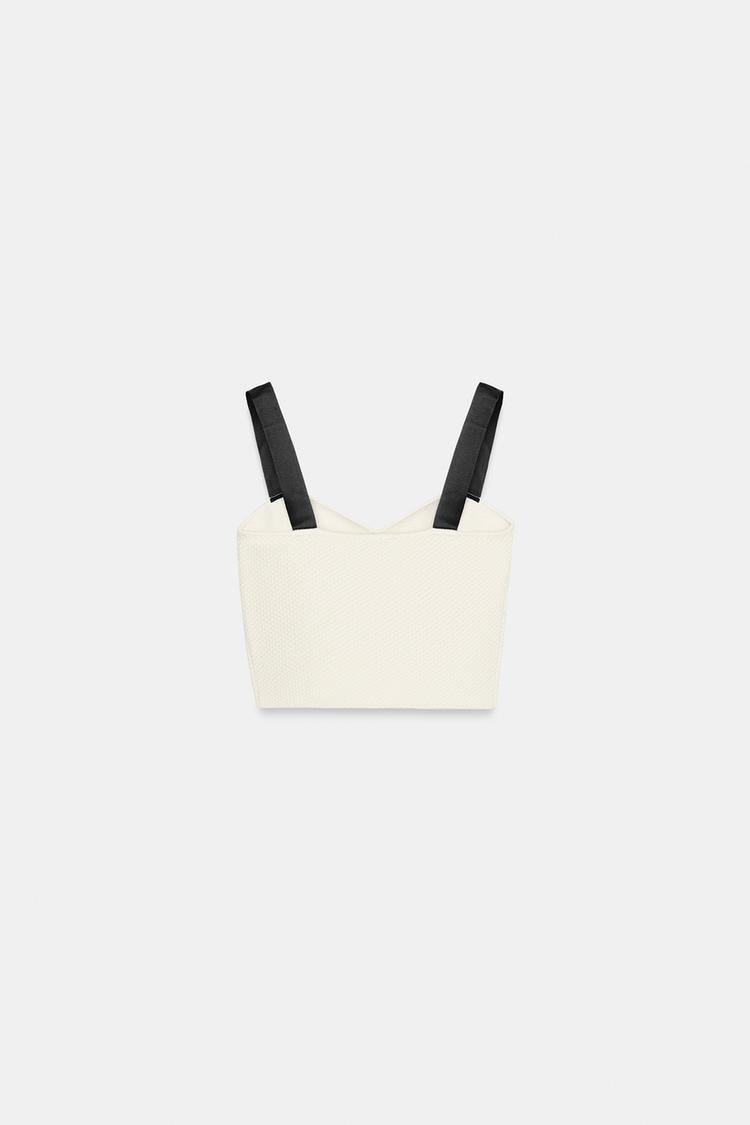 ZARA ТРИКОТАЖНЫЙ ТОП С КОНТРАСТНЫМИ БРЕТЕЛЯМИ, ЭКРЮ