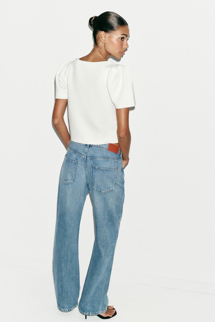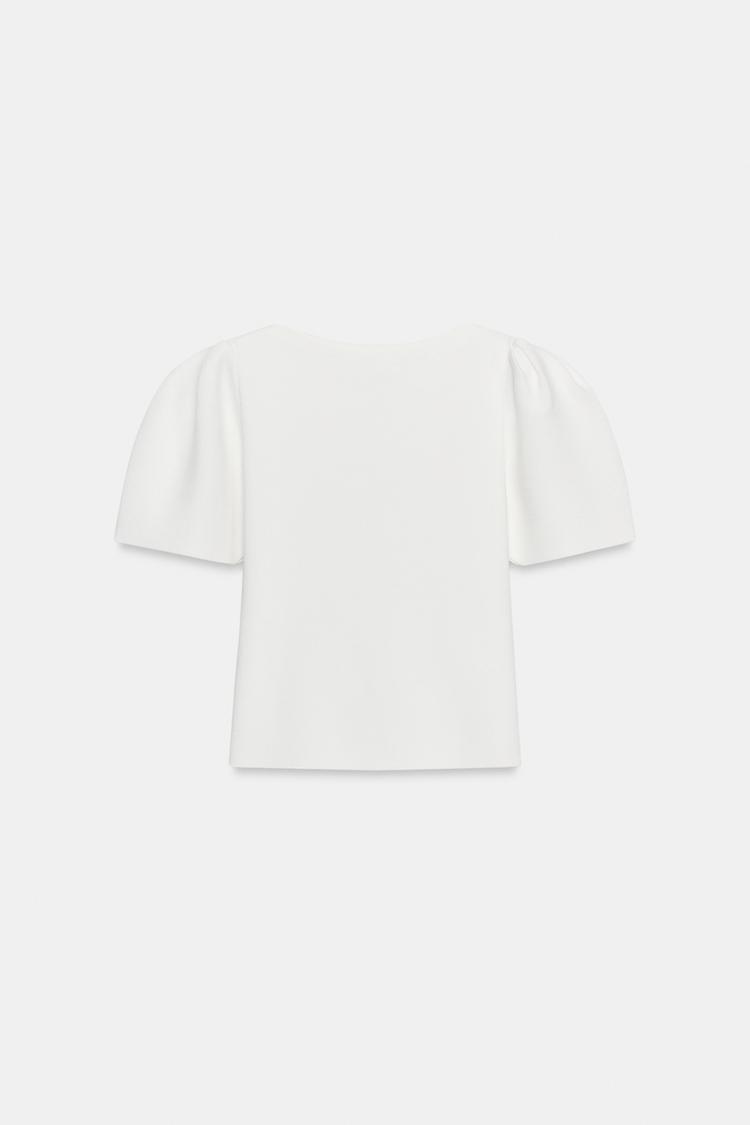 ZARA ТРИКОТАЖНЫЙ ТОП С ОБЪЕМНЫМИ РУКАВАМИ, БЕЛЫЙ