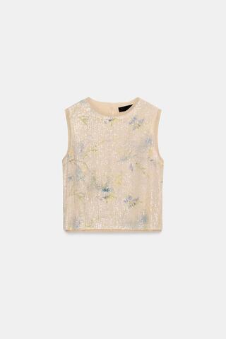 ZARA ТРИКОТАЖНЫЙ ТОП С ПАЙЕТКАМИ, РАЗНОЦВЕТНЫЙ