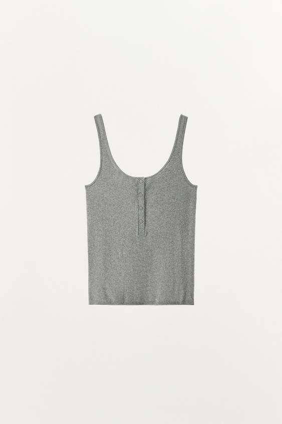 ZARA ТРИКОТАЖНЫЙ ТОП С ПУГОВИЦАМИ, СЕРЫЙ