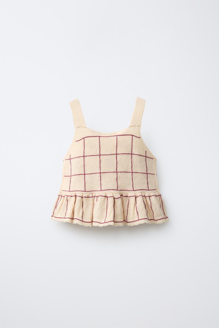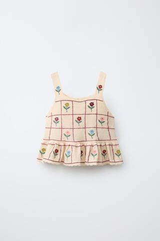 ZARA ТРИКОТАЖНЫЙ ТОП С ЦВЕТОЧНЫМ ПРИНТОМ, ЦВЕТ СЛОНОВОЙ КОСТИ