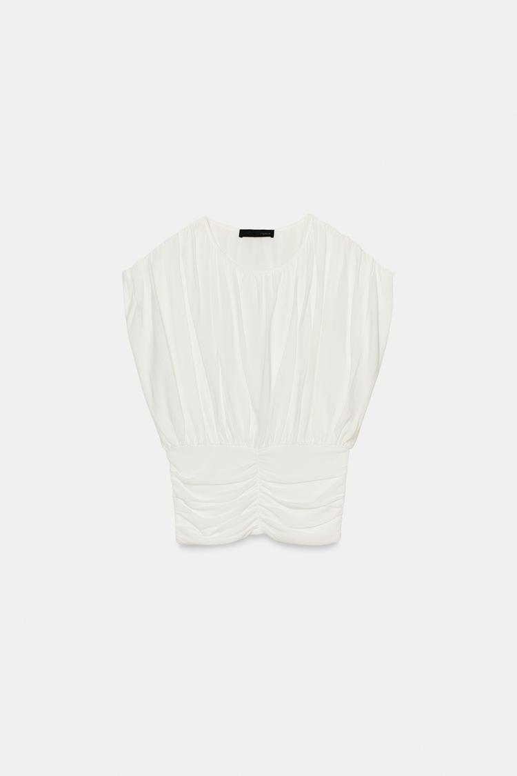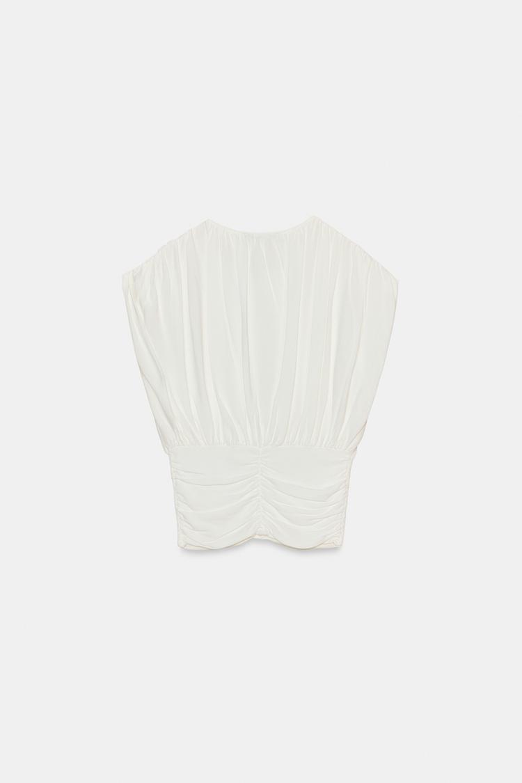 ZARA ТРИКОТАЖНЫЙ ТОП СО СБОРКАМИ, БЕЛЫЙ