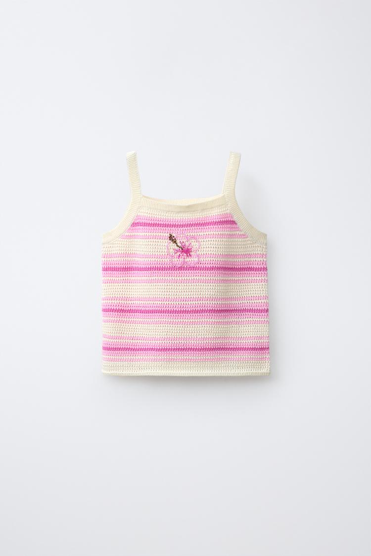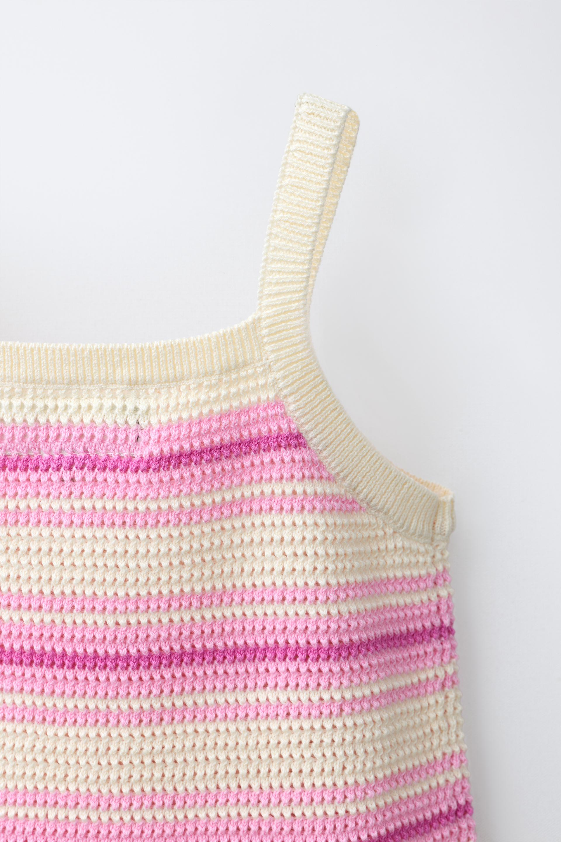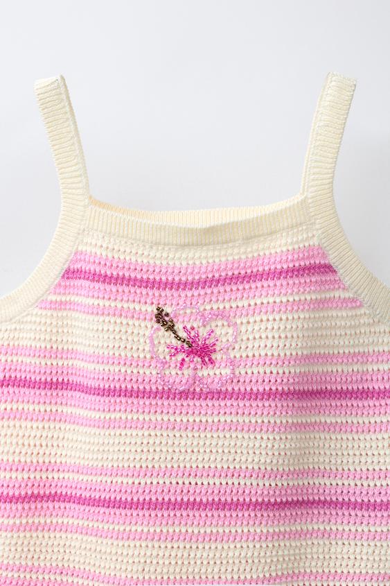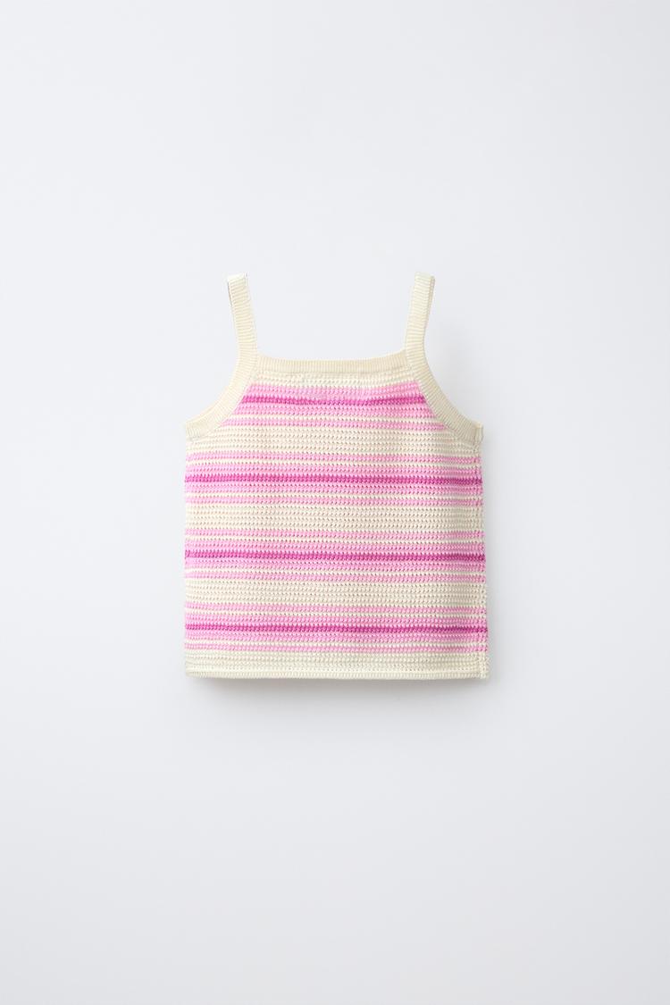 ZARA ТРИКОТАЖНЫЙ ТОП В ПОЛОСКУ С ГИБИСКУСОМ, ОТТЕНКИ РОЗОВОГО