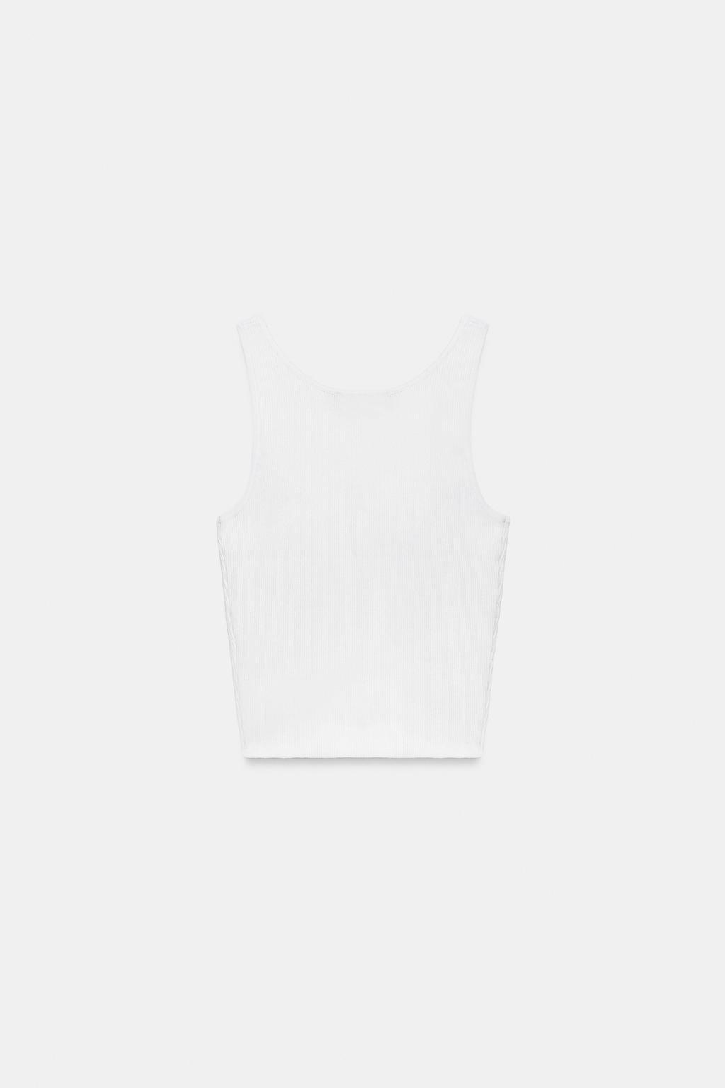 ZARA ТРИКОТАЖНЫЙ ТОП В РУБЧИК, БЕЛЫЙ
