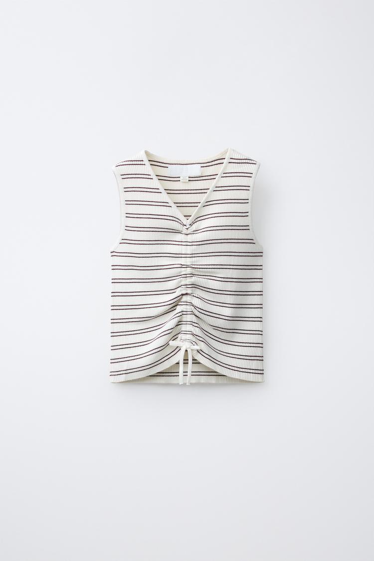 ZARA ТРИКОТАЖНЫЙ ТОП В РУБЧИК СО СБОРКАМИ, ПОЛОСКИ