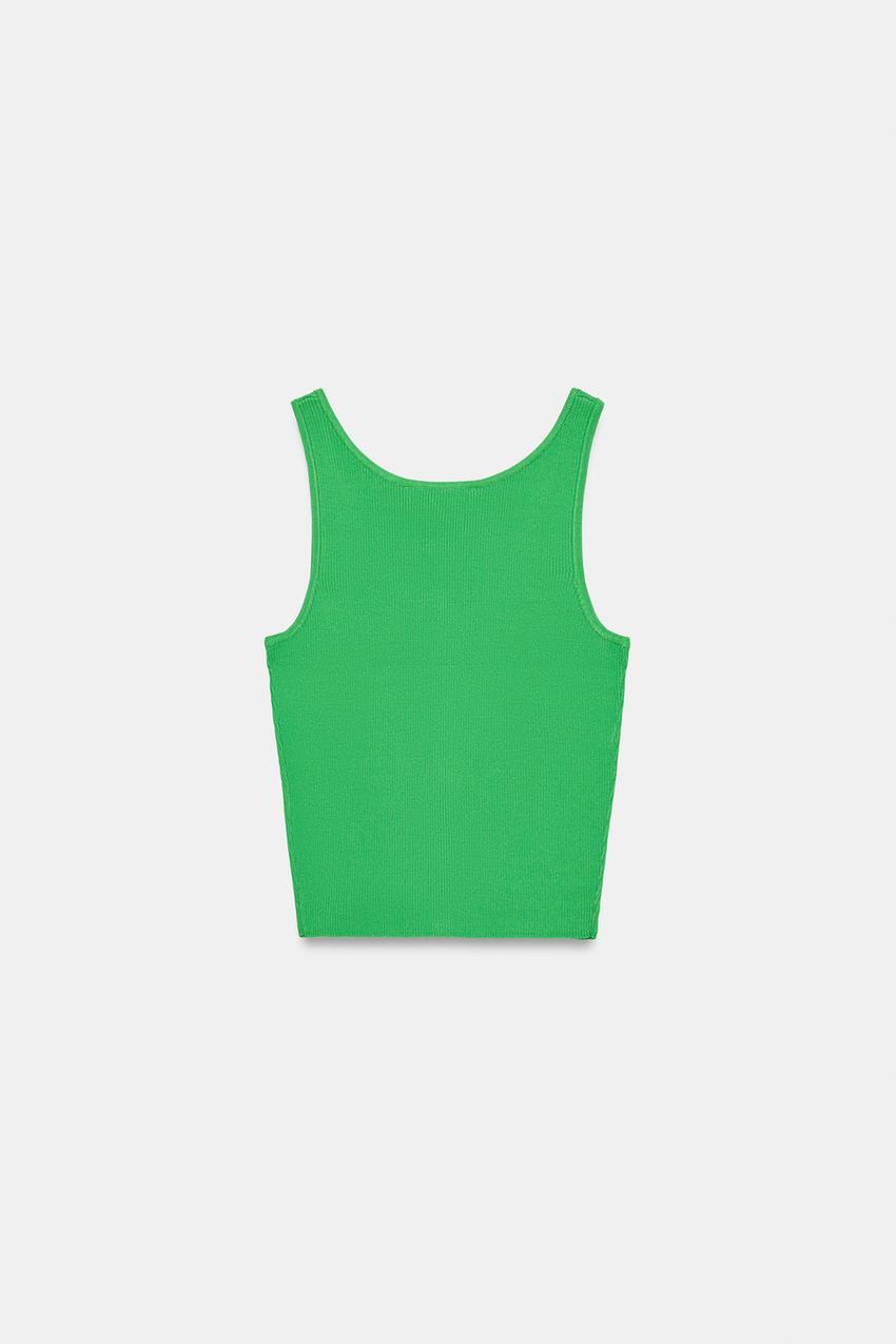 ZARA ТРИКОТАЖНЫЙ ТОП В РУБЧИК, ЗЕЛЕНЫЙ
