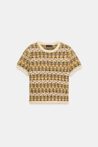 ZARA ТРИКОТАЖНЫЙ ЖАККАРДОВЫЙ ДЖЕМПЕР, РАЗНОЦВЕТНЫЙ
