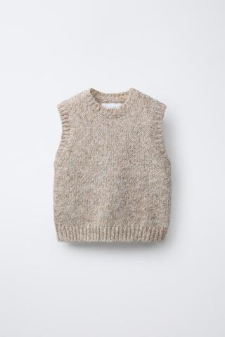 ZARA ТРИКОТАЖНЫЙ ЖИЛЕТ, РЫЖЕВАТО-КОРИЧНЕВЫЙ МЕЛАНЖ