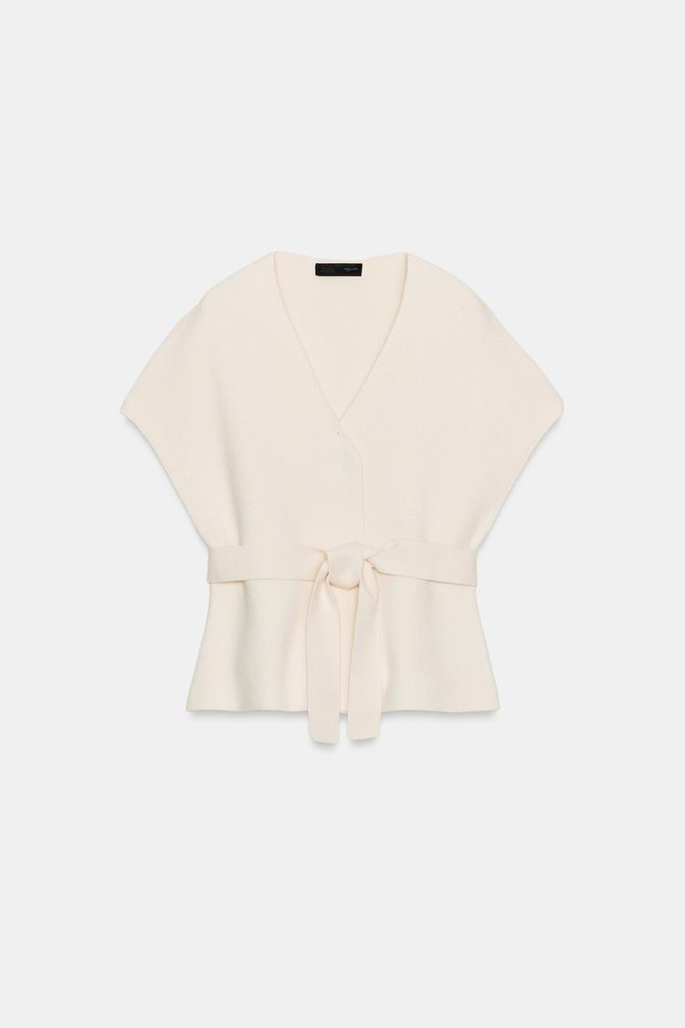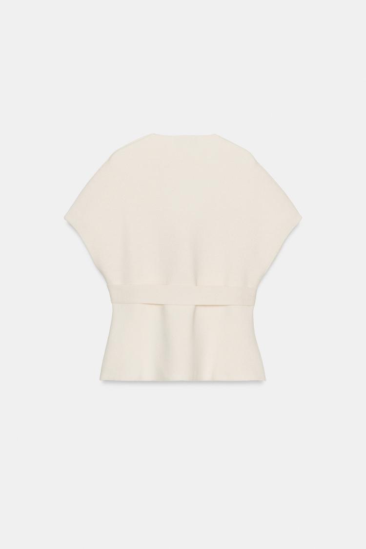ZARA ТРИКОТАЖНЫЙ ЖИЛЕТ С ПОЯСОМ, ЭКРЮ