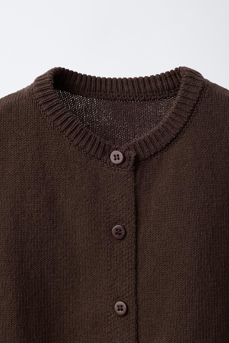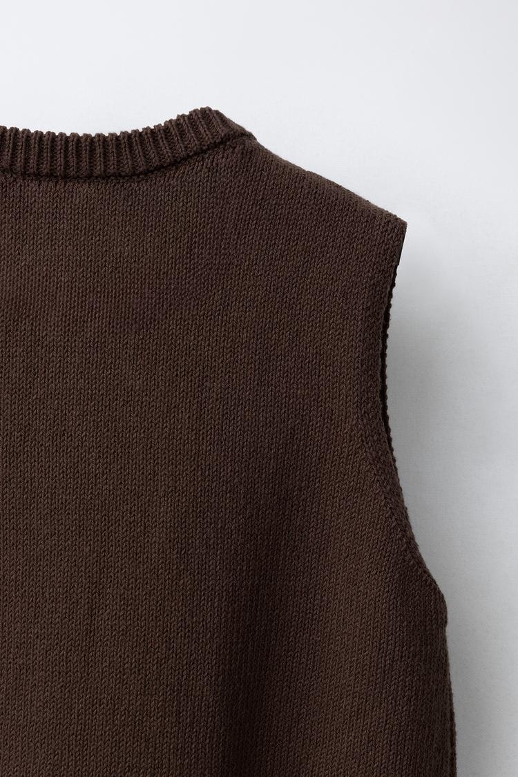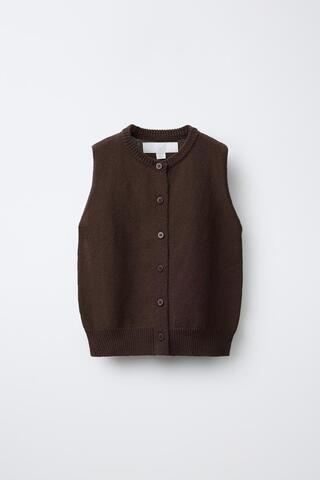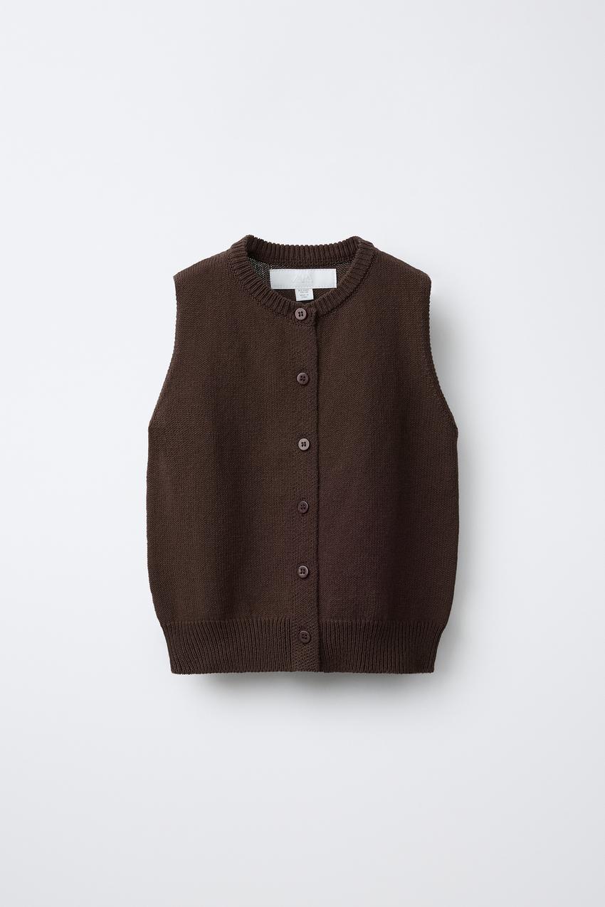 ZARA ТРИКОТАЖНЫЙ ЖИЛЕТ С ПУГОВИЦАМИ, КОРИЧНЕВЫЙ