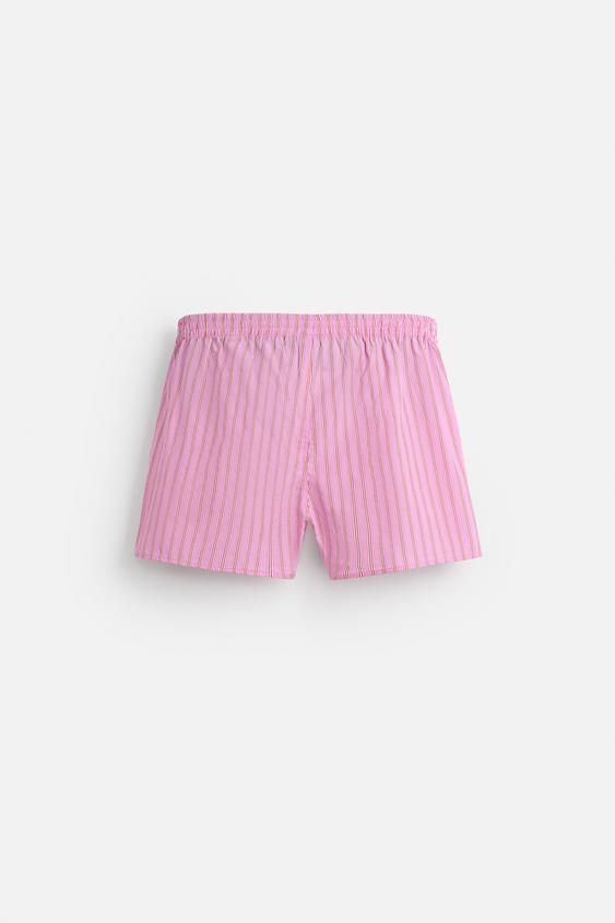 ZARA ТРУСЫ-БОКСЕРЫ ИЗ ПОПЛИНА В ПОЛОСКУ - LIMITED EDITION, РОЗОВЫЙ