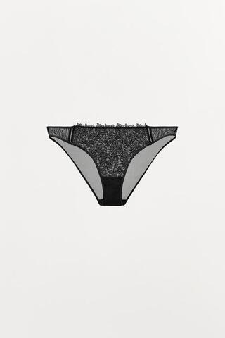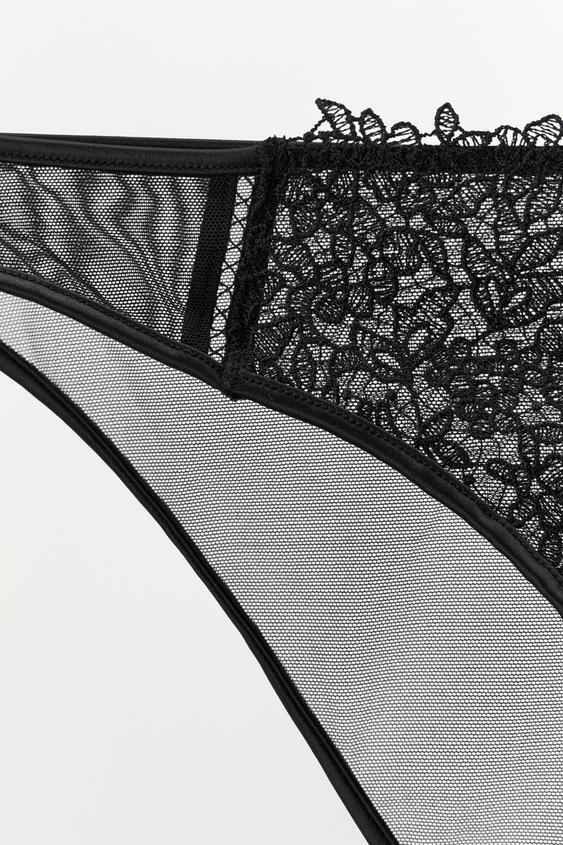 ZARA ТРУСЫ ИЗ СЕТЧАТОЙ ТКАНИ С КРУЖЕВОМ, ЧЕРНЫЙ