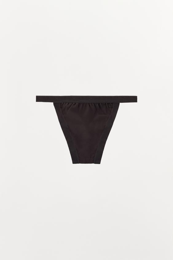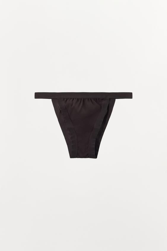 ZARA ТРУСЫ ИЗ СМЕСИ ШЕЛКА С РЕЗИНКАМИ, ТЕМНО-КОРИЧНЕВЫЙ