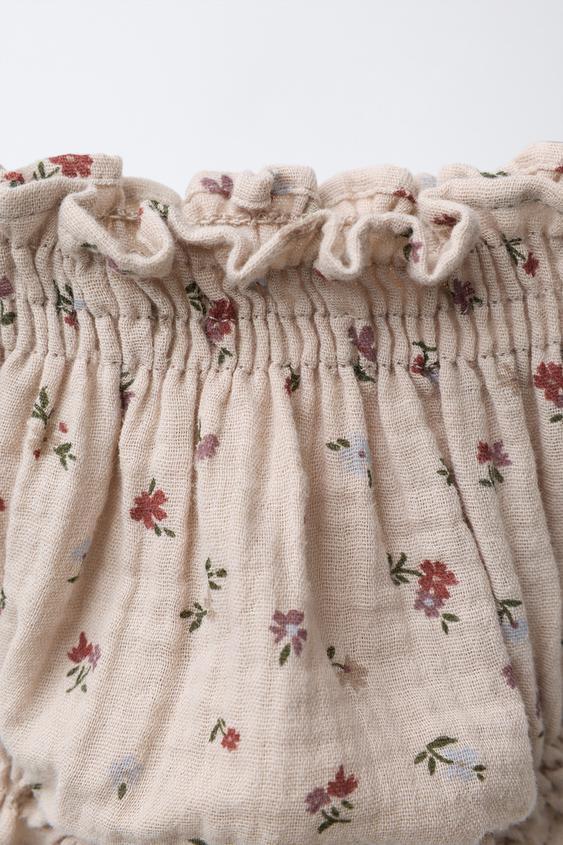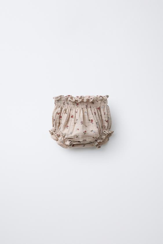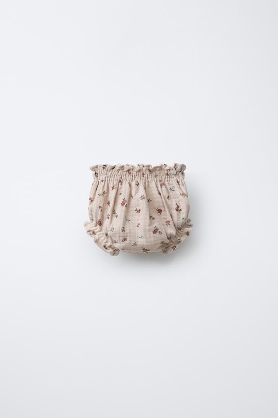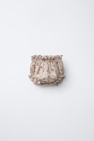 ZARA ТРУСЫ С ЦВЕТОЧНЫМ ПРИНТОМ ИЗ БАМБУЛА, РЫЖЕВАТО-КОРИЧНЕВЫЙ