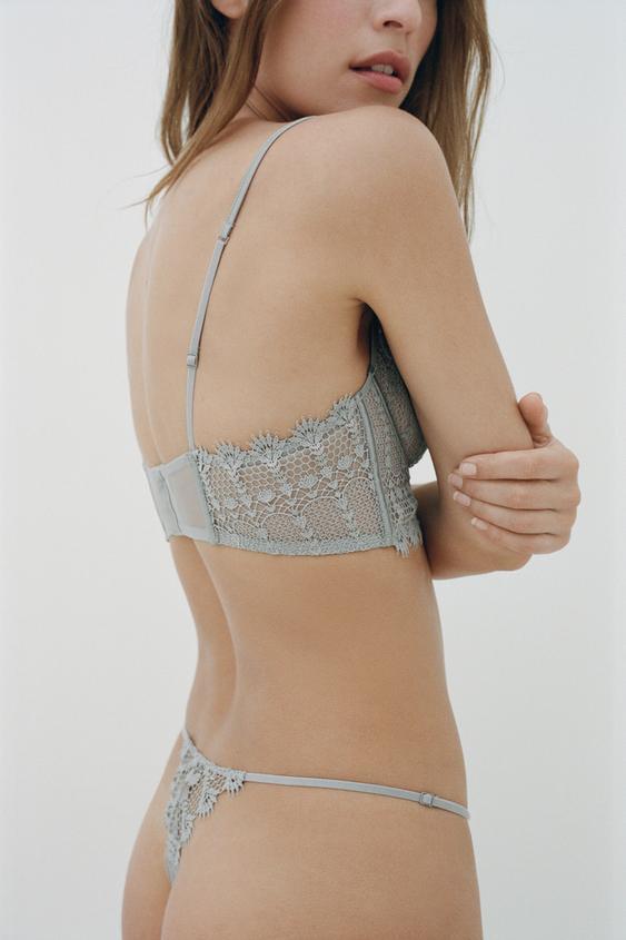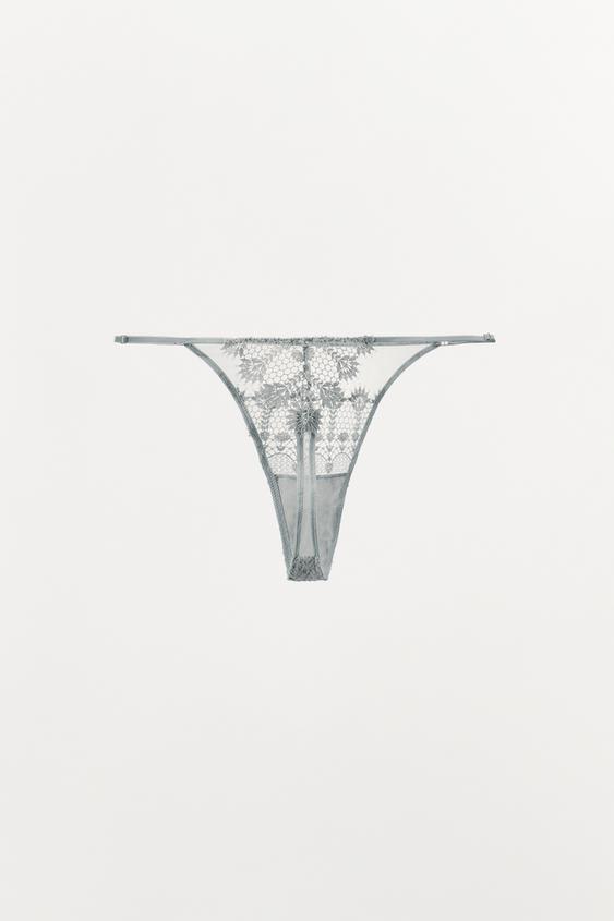 ZARA ТРУСЫ-ТАНГА ИЗ ГИПЮРА, СЕРЫЙ